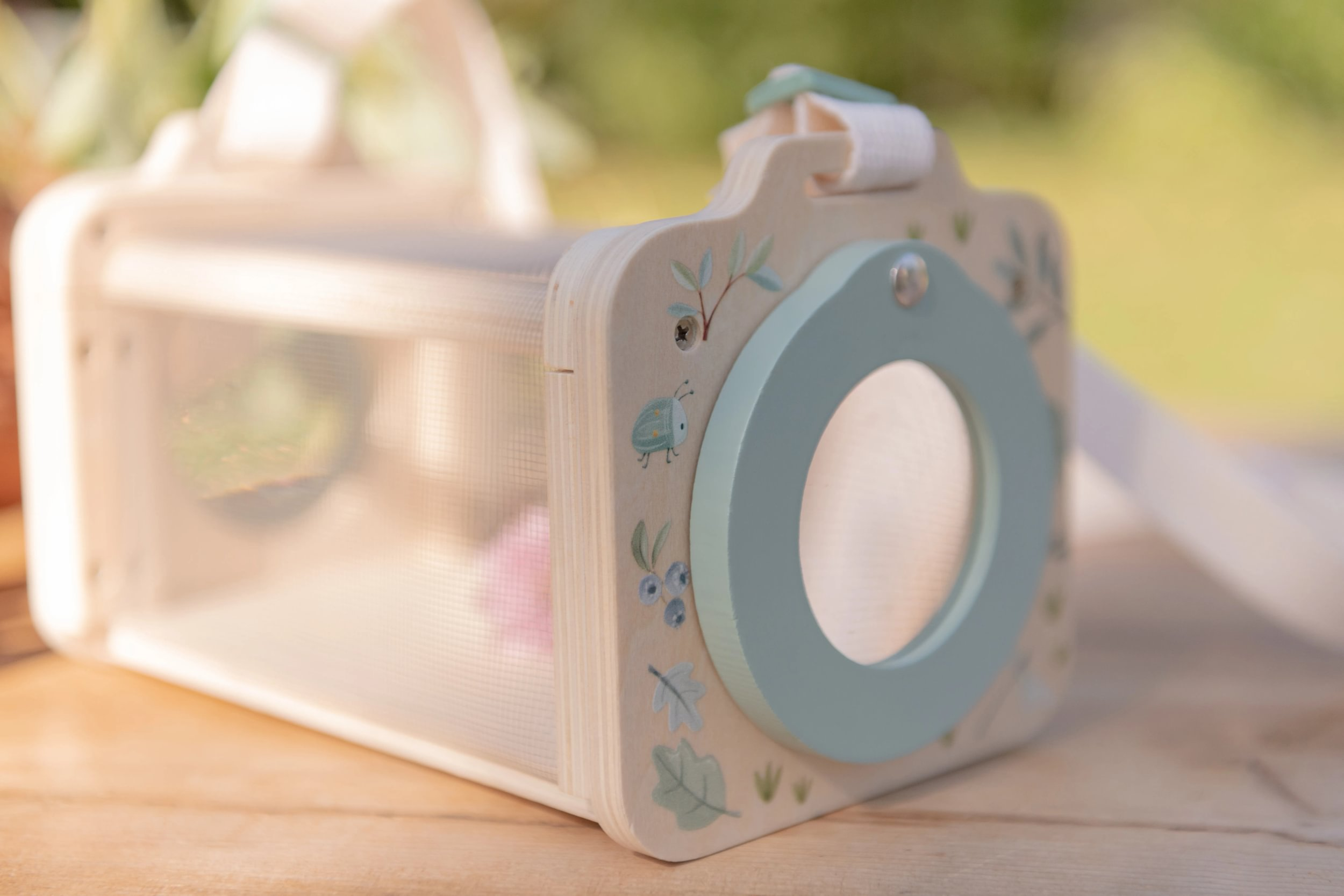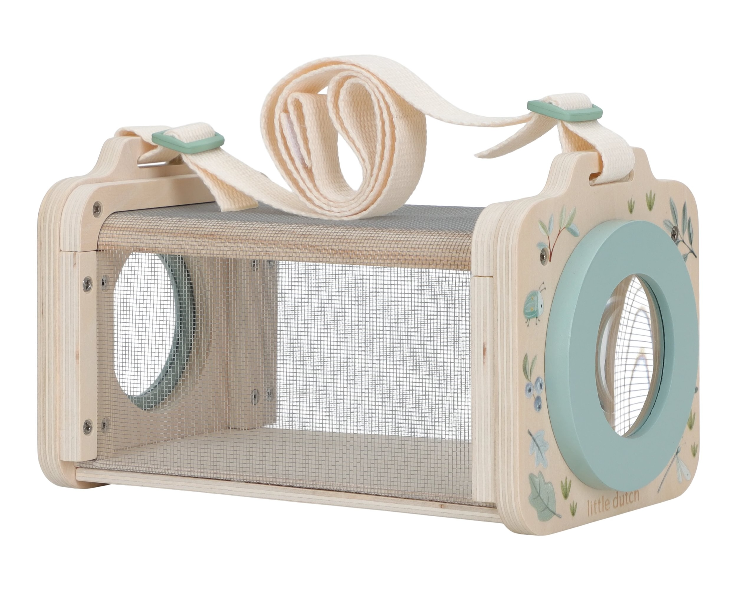 Unikátna pomôcka pre malých zvedavých prírodovedcov umožní deťom skúmať zblízka a bezpečne hmyz, ktorý žije na záhrade, na lúke alebo v lese. Veľká lupa slúži aj ako dvierka, ktorými sa hmyz dostane dovnútra boxu. Bočné steny sú zo sieťoviny, aby bol hmyz vo vnútri v bezpečí a mohol dýchať. Popruh umožňuje ľahké nosenie na krku s voľnými rukami. Po skončení pozorovania hmyz môžete bez problémov vypustiť späť do prírody, kam patrí!