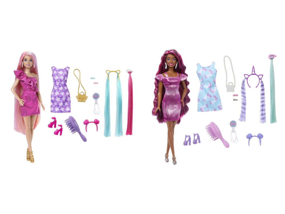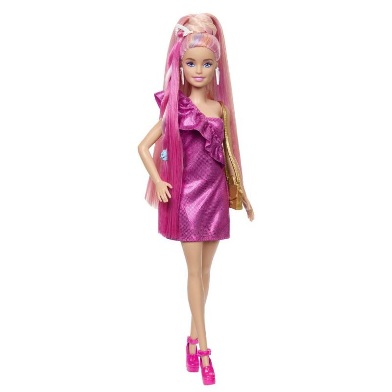 Kolekcia Barbie® Bábika s fantastickými vlasmi prináša úžasnú zábavu pre malé kaderníčky, ktoré môžu vytvárať farebné kombinácie účesov! Každá bábika má 21 cm dlhé, farebné vlasy s dúhovými odleskami. Deti si môžu vzhľad svojej bábiky prispôsobiť pomocou 11 módnych a vlasových doplnkov, vrátane ďalších šiat s potlačou, ďalšieho páru topánok a kabelky! Stylingové doplnky zahŕňajú jednu korunku s farebnými nástavcami do vlasov, jednu sponu s pestrým nástavcom do vlasov, dve sponky, jednu čelenku s drdolom a jednu sadu gumičiek do vlasov. Akonáhle deti dokončia svoje majstrovské diela vo forme účesov, môžu pomocou kefy vyčesať bábike Barbie® jej kučery a užiť si hodiny zábavy! Deti môžu ľahko premeniť jej vzhľad pomocou kombinácie módnych doplnkov a účesov - od vytvárania účesov a vrkočov, až po zdobenie farebnými prvkami, možnosti sú nekonečné! Každá bábika sa predáva samostatne v závislosti od dostupnosti. Bábiky nemôžu stáť samostatne. Farby a prevedenia sa môžu líšiť.