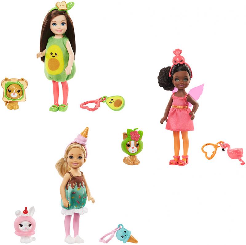 S bábikami Chelsea™ v kostýme môžu deti povoliť uzdu fantázii a rozprávať veľa úžasných príbehov! Tieto rozkošné bábiky sú oblečené do kostýmov s motívmi obľúbených zvieratiek, sladkostí a ďalších. Každá z bábik má tvarovanú ozdobu hlavy, ako napríklad čelenku alebo mašľu, ktorá sa dodáva s prezlečeným zvieracím kamarátom, ktorý je tematicky zladený s jej kostýmom. Balenie taktiež obsahuje malú príveskovú kľúčenku, ktorú si deti môžu jednoducho pripnúť k batohu alebo oblečeniu, a môžu si tak vziať zábavu i na cesty a zdieľať ju s kamarátmi! Predávajú sa samostatne podľa aktuálnej ponuky. Bábiky nevedia samostatne stáť. Farby a vzhľad výrobku sa môžu líšiť. Pre deti od 3 rokov.