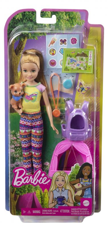 S herným setom Kempujúca sestra so zvieratkom si užijete dokonalé kempovanie inšpirované novou radou Barbie®! Na výber sú bábika Skipper™ alebo Stacie™! Tieto sestry majú prekrásne kempingové oblečenie a vedia rozbehnúť zábavu na plné obrátky. Vyberte si bábiku Skipper™ s rozkošným kamarátom zajačikom a táborákom, alebo bábiku Stacie™ so sladkým šteniatkom, stanom pre domácich miláčikov a prepravkou na chrbát. Obe bábiky obsahujú doplnky pre rozprávanie príbehov a list so samolepkami pre zábavné prispôsobenie.