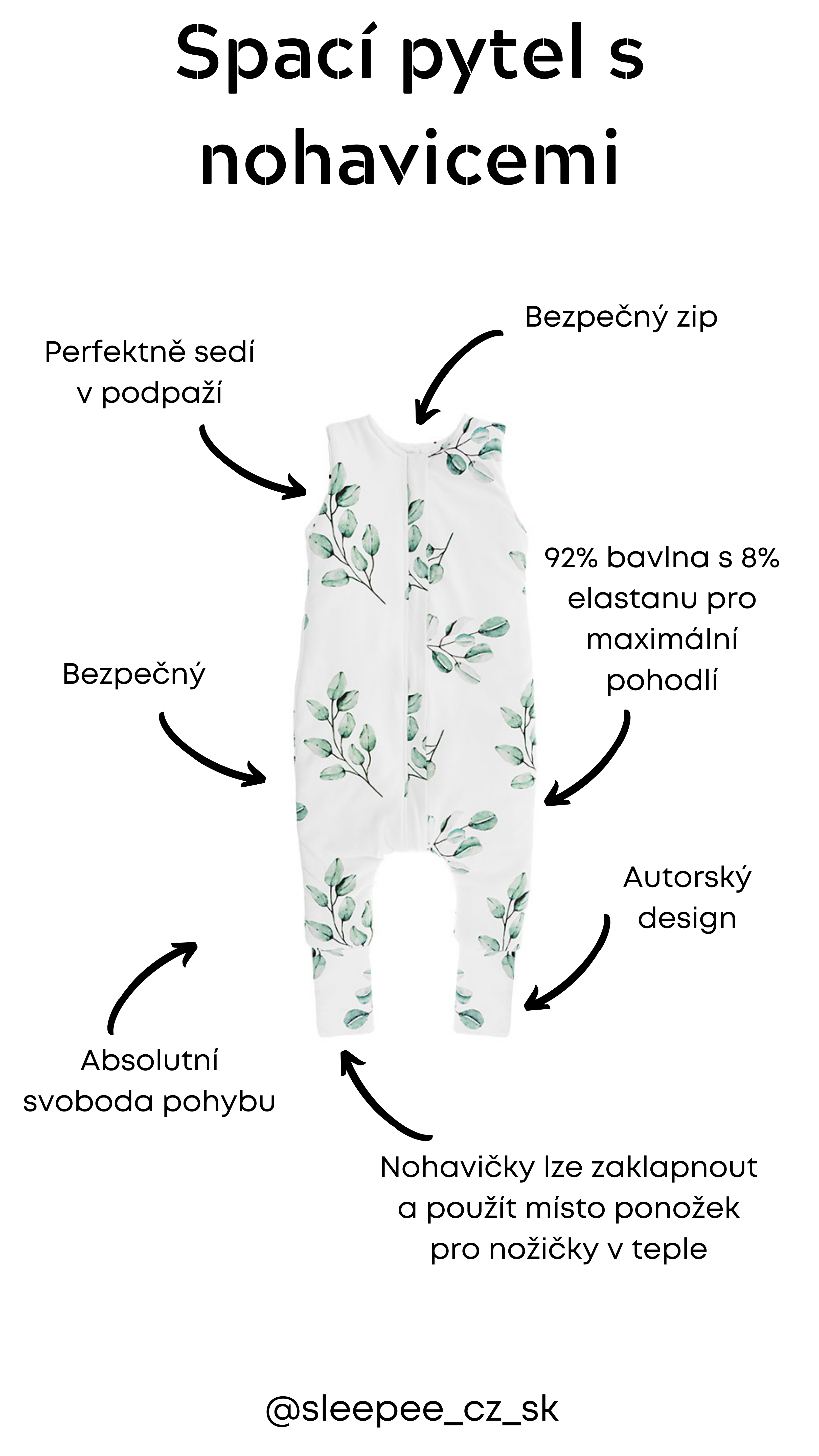 Spací pytel s nohavicemi Sleepee Green Forest (vel. S) je perfektní volba pro batolata. Zajistí úplnou svobodu pohybu při spánku, ale zároveň se dítko v noci neodkope. Nohavice mají krytky, které lze přetáhnout přes chodidla dítěte pro ještě větší teplo. Bavlněný materiál je prodyšný a díky 8% elastanu také příjemně pružný a pohodlný. K dispozici ve třech velikostech: 6-12 měsíců, 1-2 roky a 3-4 roky.