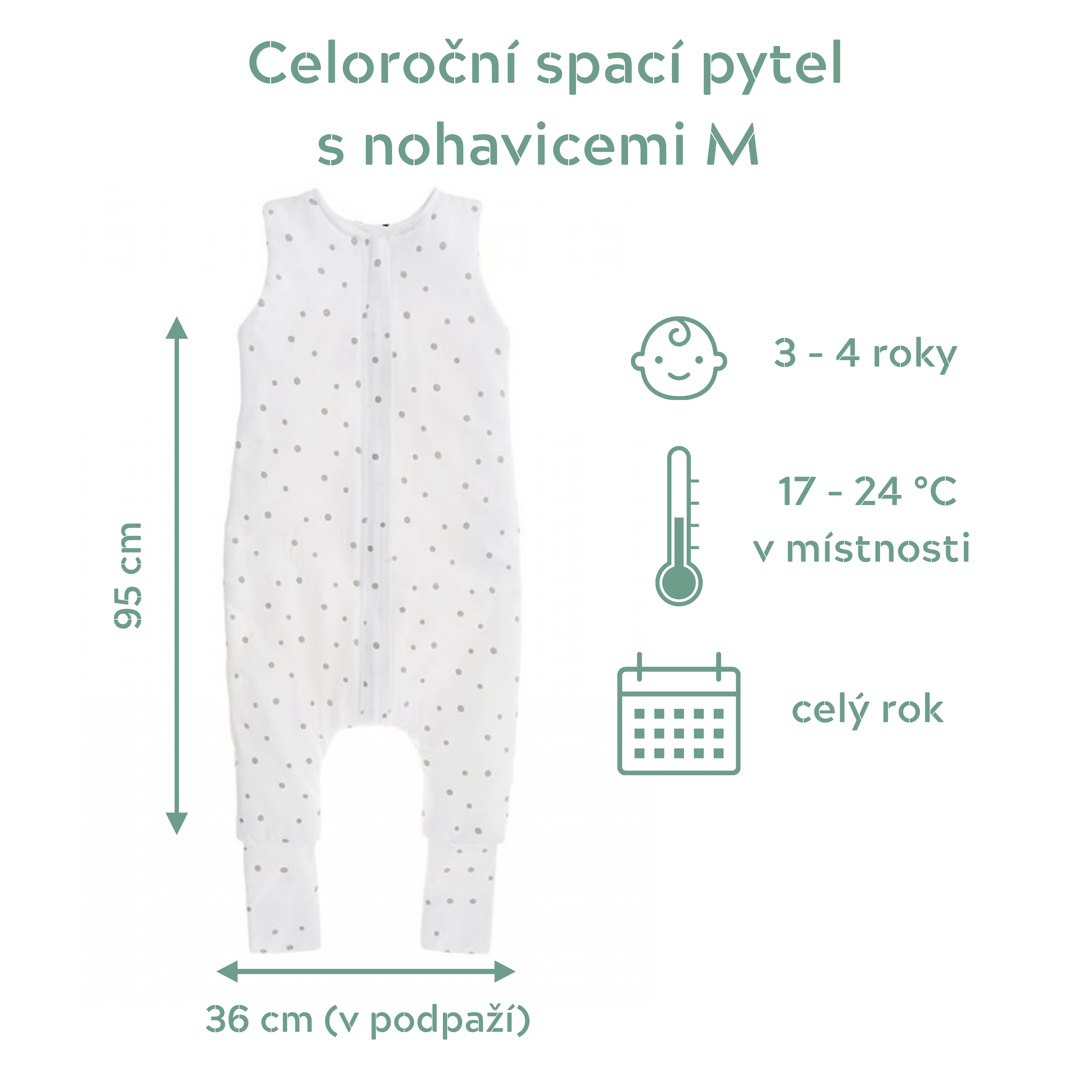 Spací pytel s nohavicemi Sleepee Ivory Forest (vel. M) je perfektní volba pro menší školkové děti. Zajistí úplnou svobodu pohybu při spánku, ale zároveň se dítko v noci neodkope. Nohavice mají krytky, které lze přetáhnout přes chodidla dítěte pro ještě větší teplo. Bavlněný materiál je prodyšný a díky 8% elastanu také příjemně pružný a pohodlný. K dispozici ve třech velikostech: 6-12 měsíců, 1-2 roky a 3-4 roky.