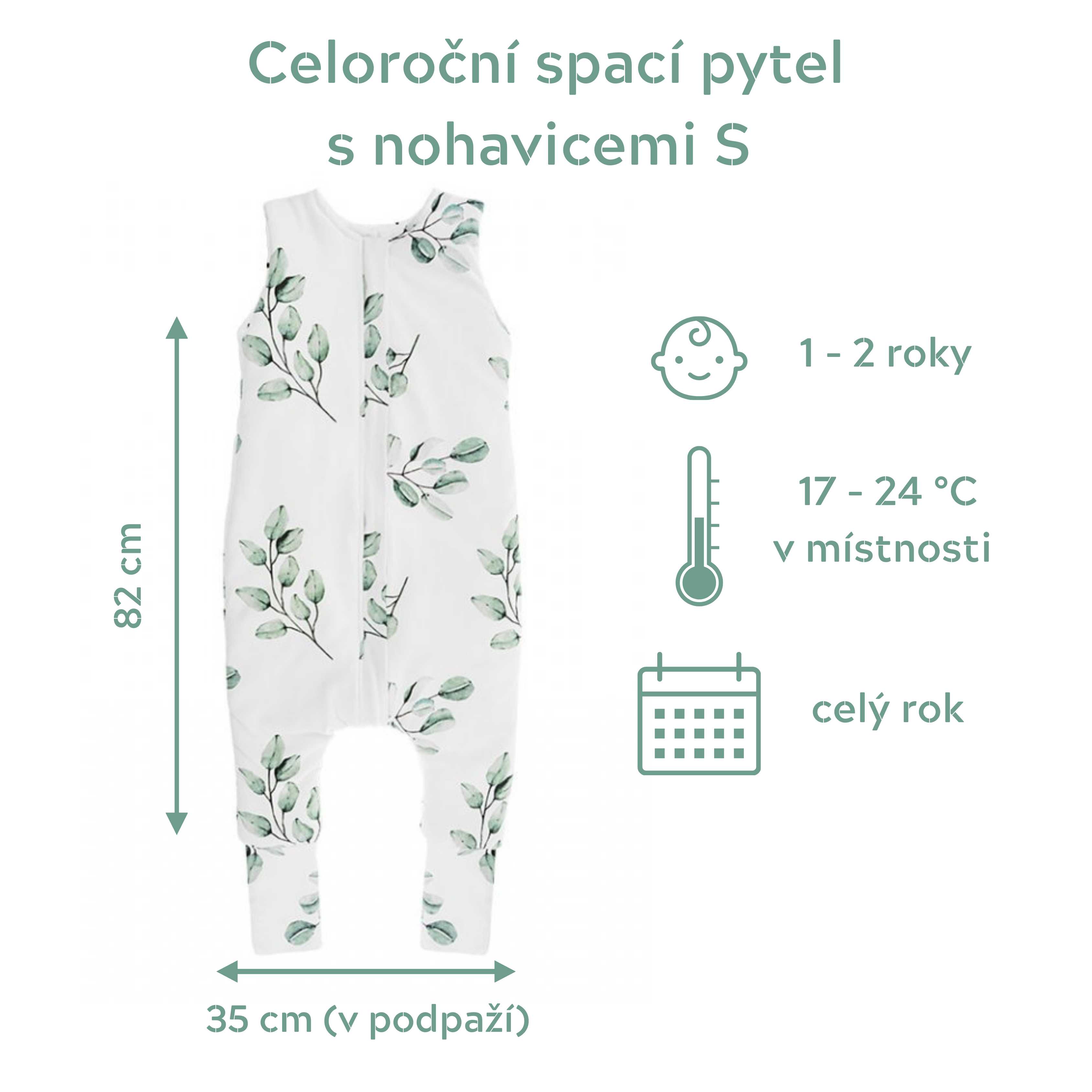 Spací pytel s nohavicemi Sleepee Ivory Forest (vel. S) je perfektní volba pro batolata. Zajistí úplnou svobodu pohybu při spánku, ale zároveň se dítko v noci neodkope. Nohavice mají krytky, které lze přetáhnout přes chodidla dítěte pro ještě větší teplo. Bavlněný materiál je prodyšný a díky 8% elastanu také příjemně pružný a pohodlný. K dispozici ve třech velikostech: 6-12 měsíců, 1-2 roky a 3-4 roky.