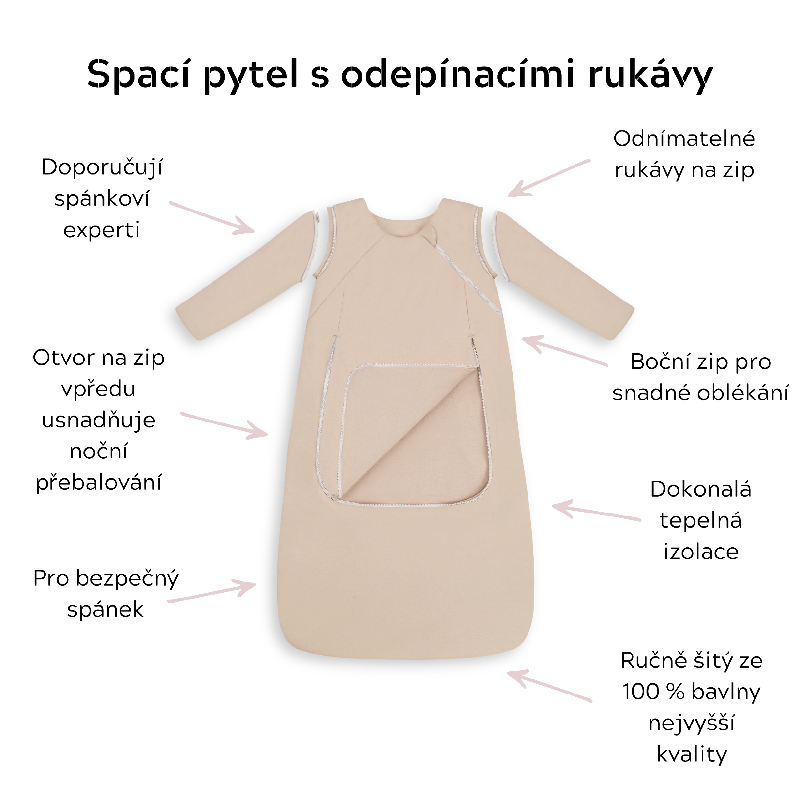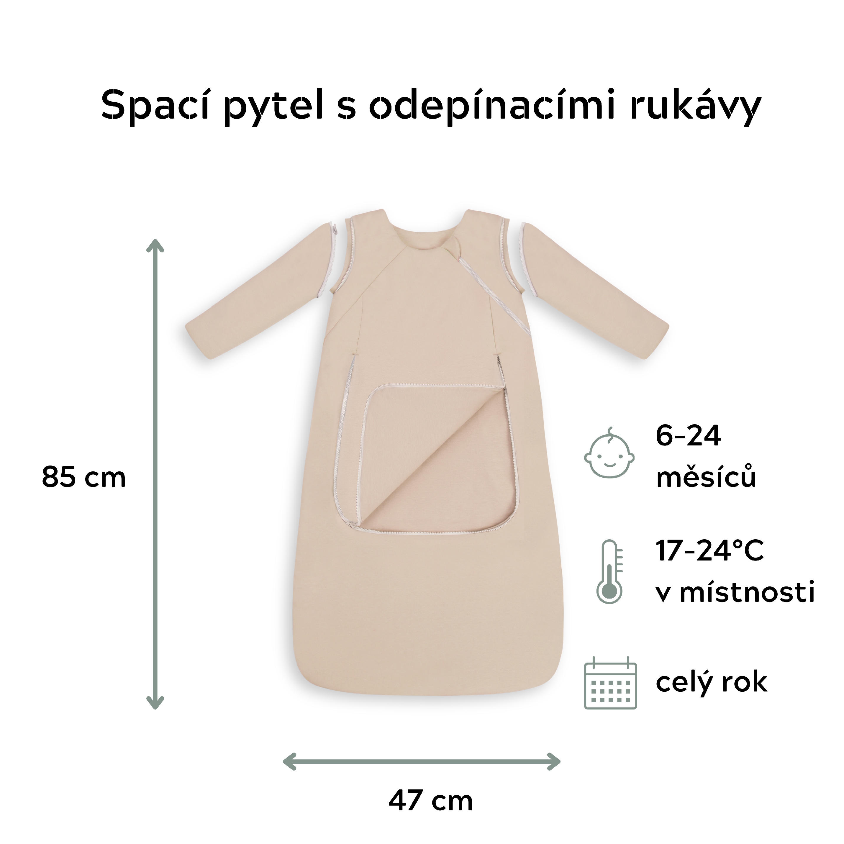 Spací pytel Sleepee s odmínatelnými rukávy Grey je dokonalý pomocník pro děti, které se v noci často odkopávají. Je celoroční a díky odepínatelným rukávům snadno přizpůsobíte spací pytel aktuálním potřebám dítěte. Spací pytel je nejbezpečnější ložní prádlo pro miminka. Vhodný pro děti od 6 měsíců do 2 let. TOG 2.5. Barva šedá.
