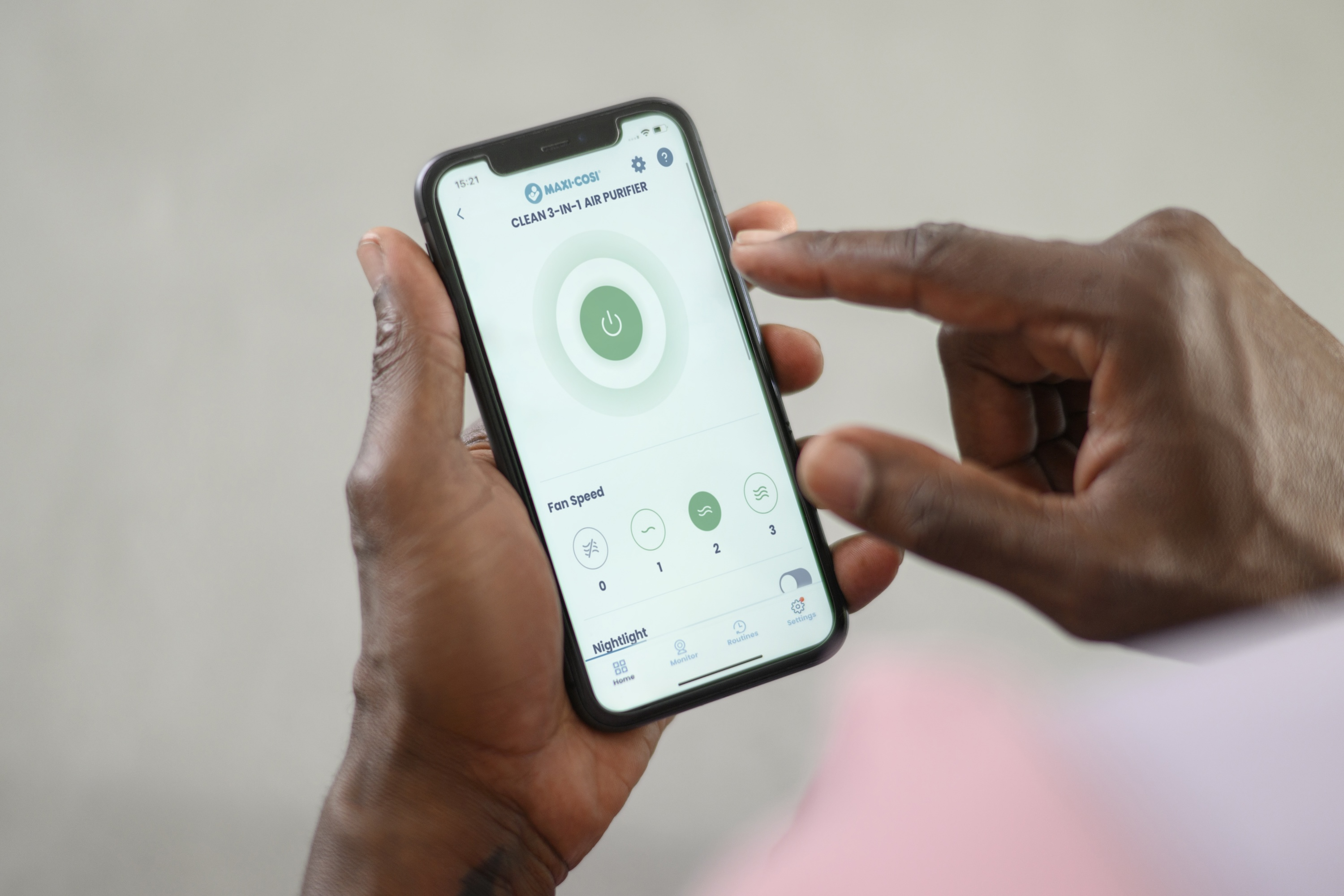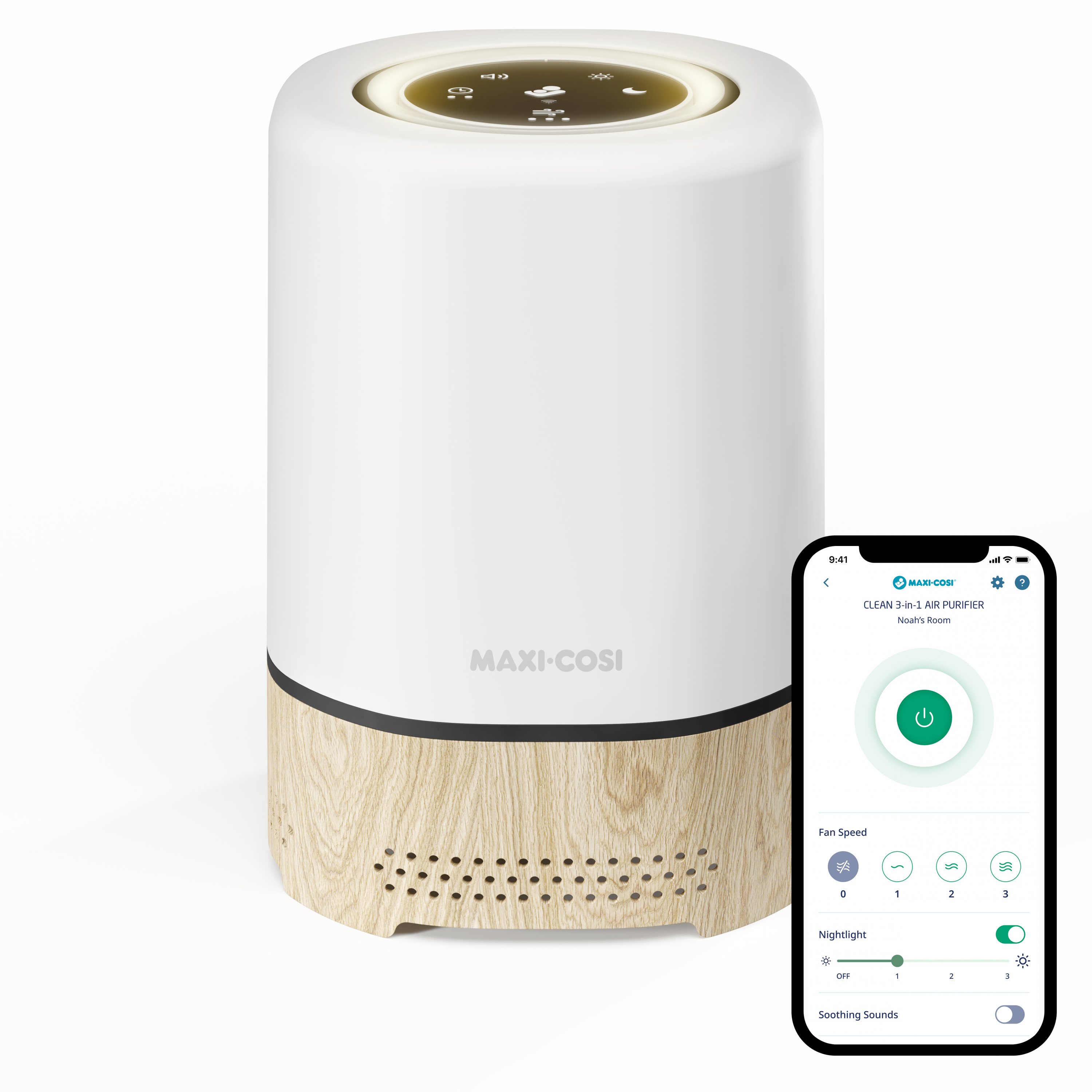 Čistička vzduchu Maxi-Cosi 3v1 Clean je inteligentné zariadenie do detskej izby, ktoré pomáha vytvoriť čisté a pokojné prostredie pre spánok aj každodennú pohodu. V jednom prístroji kombinuje čističku vzduchu, nočné svetlo a reproduktor s upokojujúcimi zvukmi. Vďaka výkonnej HEPA 13 filtrácii odstraňuje zo vzduchu až 99,97% prachu, peľu, alergénov a ďalších častíc, takže sa vášmu dieťaťu dýcha lepšie vo dne aj v noci. Nastaviteľné svetlo a 4 upokojujúce zvuky vám umožnia vytvoriť príjemnú atmosféru pred zaspávaním. Všetko pohodlne nastavíte aj na diaľku cez aplikáciu Maxi-Cosi Connected Home.