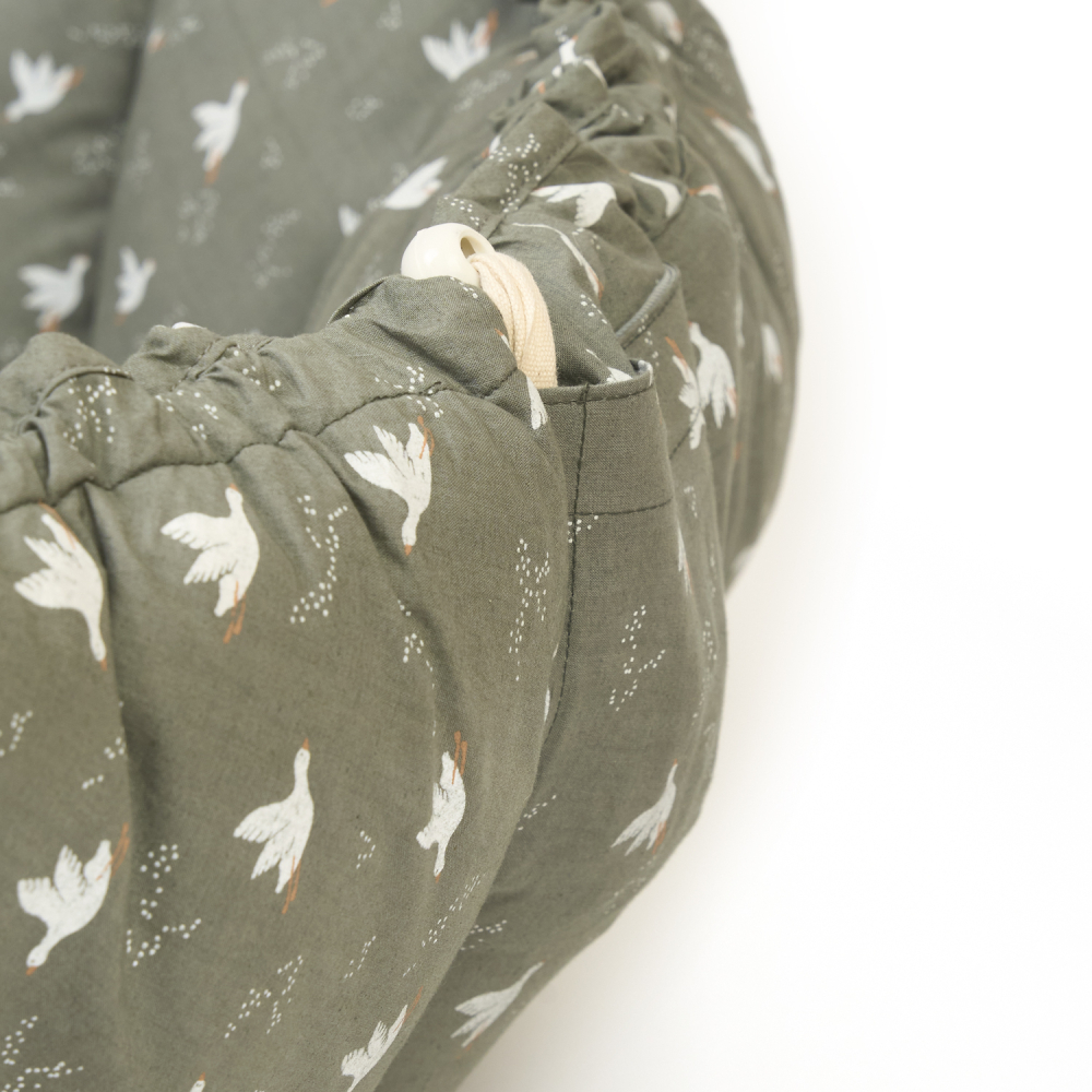 3v1 dizajn: hracia podložka, bezpečné hniezdo a miesto na hračky
