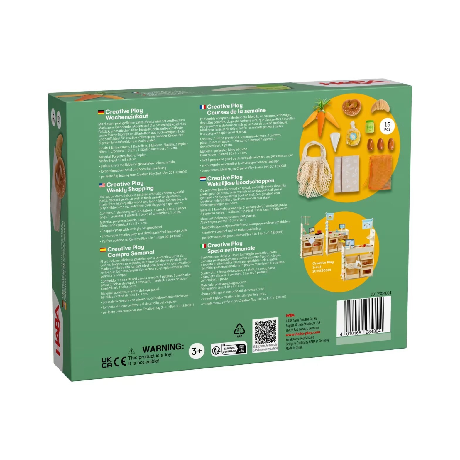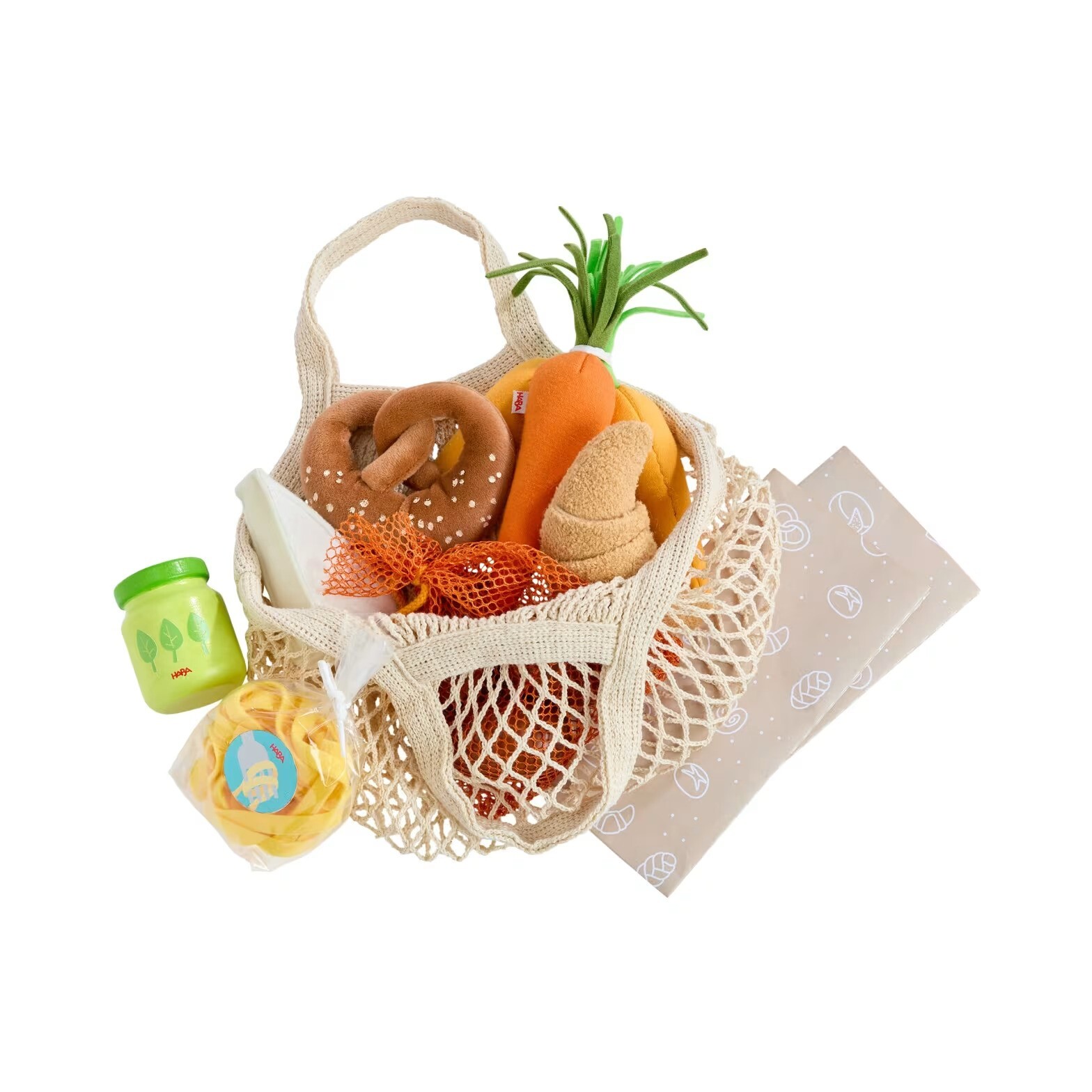 Nákupná sieťka s potravinami premení každú hru na trh na skutočné dobrodružstvo. Táto bohato naplnená sieťka obsahuje rozmanité potraviny, ktoré sú spracované s dôrazom na detail, aby malým nakupujúcim poskytli čo najrealistickejší zážitok. Súprava obsahuje široký výber pochutín vyrobených z kvalitného dreva a textilu, medzi ktorými nájdete pečivo, aromatický syr, farebné cestoviny, pesto, ako aj čerstvú mrkvu a zemiaky. Hračka je ideálna pre kreatívne hranie rolí, vďaka čomu si deti môžu naplno vychutnať svoje vlastné nákupné zážitky. Je to skvelý doplnok do každej detskej kuchynky alebo obchodíka a zároveň výborný spoločník k sade Creative Play 3 v 1. Vek: 3