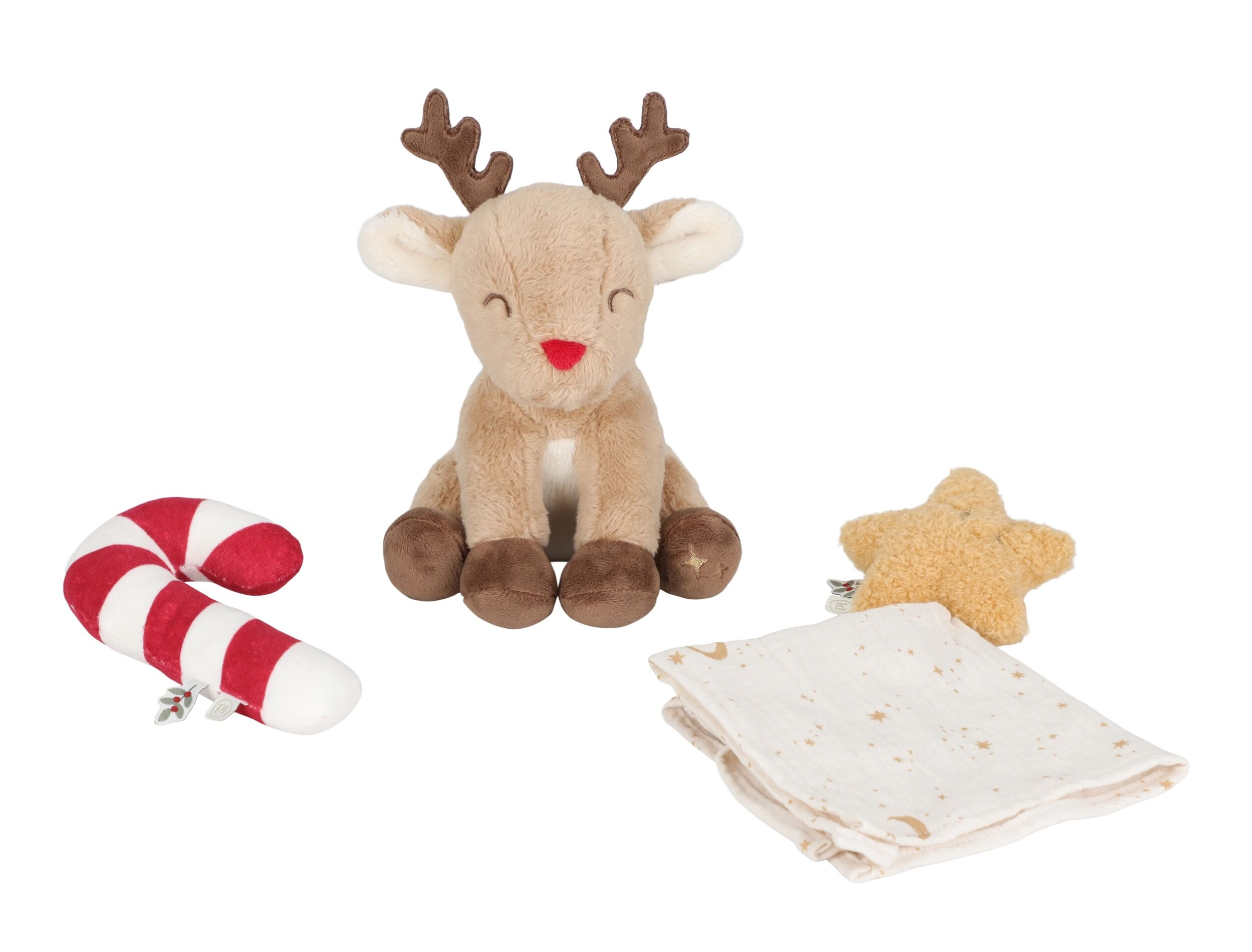 Špeciálna vianočná edícia darčekovej sady plyšových hračiek obsahuje rozkošného plyšového soba, maznáčika s hviezdou a plyšovú cukrovú paličku. Sada je vhodná ako vianočný darček aj ako darček pre novonarodené bábätko.
