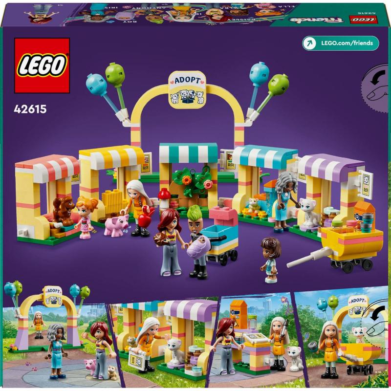 Deti, ktoré milujú hračkárske zvieratká si užijú hodiny zábavnej hry na starostlivosť o zvieratká so stavebnicou LEGO® Friends Deň adopcie zvierat (42615) pre dievčatá a chlapcov od 6 rokov. Stavebnicová hračka so zvieratkami obsahuje 4 minibábiky, 2 mikrobábiky, figúrku bábätka, 5 figúrok zvieratiek a veľa doplnkov. Táto sociálno-emocionálna hračka inšpiruje deti k starostlivosti o domáce zvieratá popri pomáhaní Paisley priradiť zvieratká k ich novým majiteľom. Je tu prasiatko, mačka, škrečok, ježko a figúrka psa, pričom každé zvieratko má svoj vlastný prístrešok. K dispozícii je pikniková zóna, kde si zvieratká a ich noví majitelia môžu oddýchnuť, a obchod s krmivom pre zvieratká. Až bude čas odísť do ich nového domova, Paisley nasadí zvieratká do prívesu. Medzi doplnky patrí kefa, jablko, pero, miska na krmivo pre zvieratká, huba, hrnčeky, adopčné papiere a krmivo pre zvieratká. Objavte ďalšie stavebnice pre deti vo svete LEGO Friends, ktorý je plný príležitostí na rozprávanie príbehov a hru na skutočný život. Táto stavebnica sa dodáva s aplikáciou LEGO Builder pre jednoduché a intuitívne staviteľské dobrodružstvo.