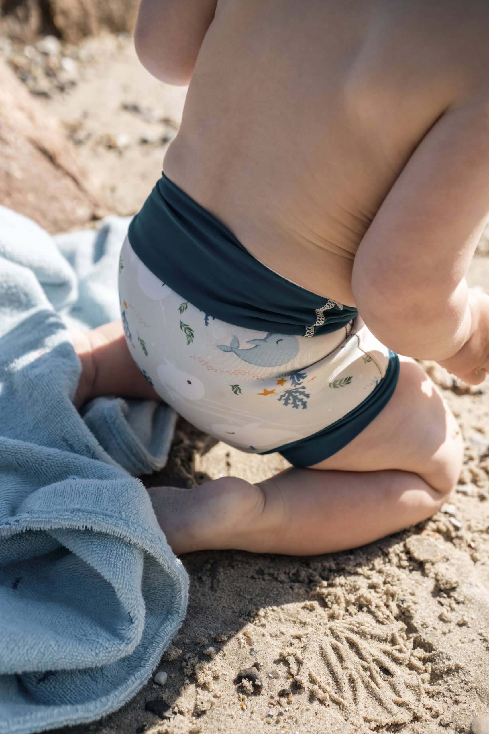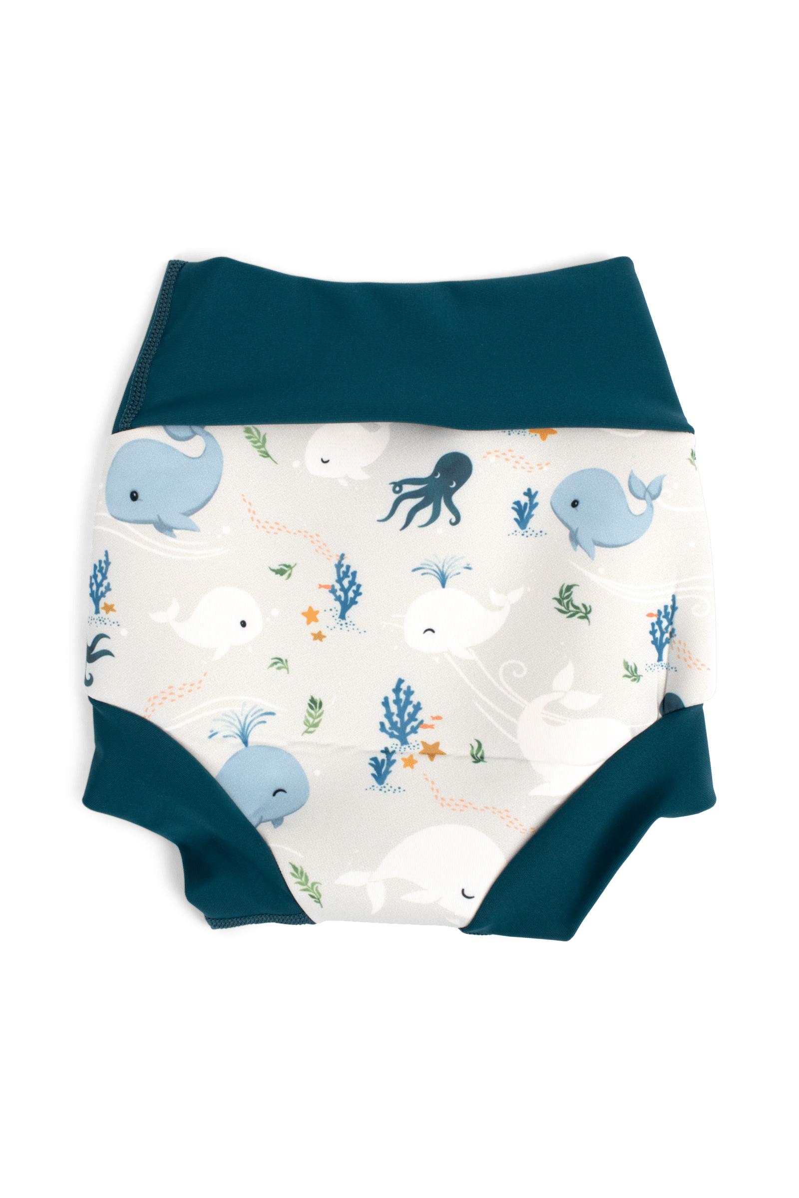 Plavky sú vyrobené z neoprénu, vďaka čomu skvele sedia a spoľahlivo držia plaveckú plienku na mieste. Poskytujú vysokú ochranu UV50+ a sú príjemné na dotyk, takže sú ideálne pre citlivú detskú pokožku.