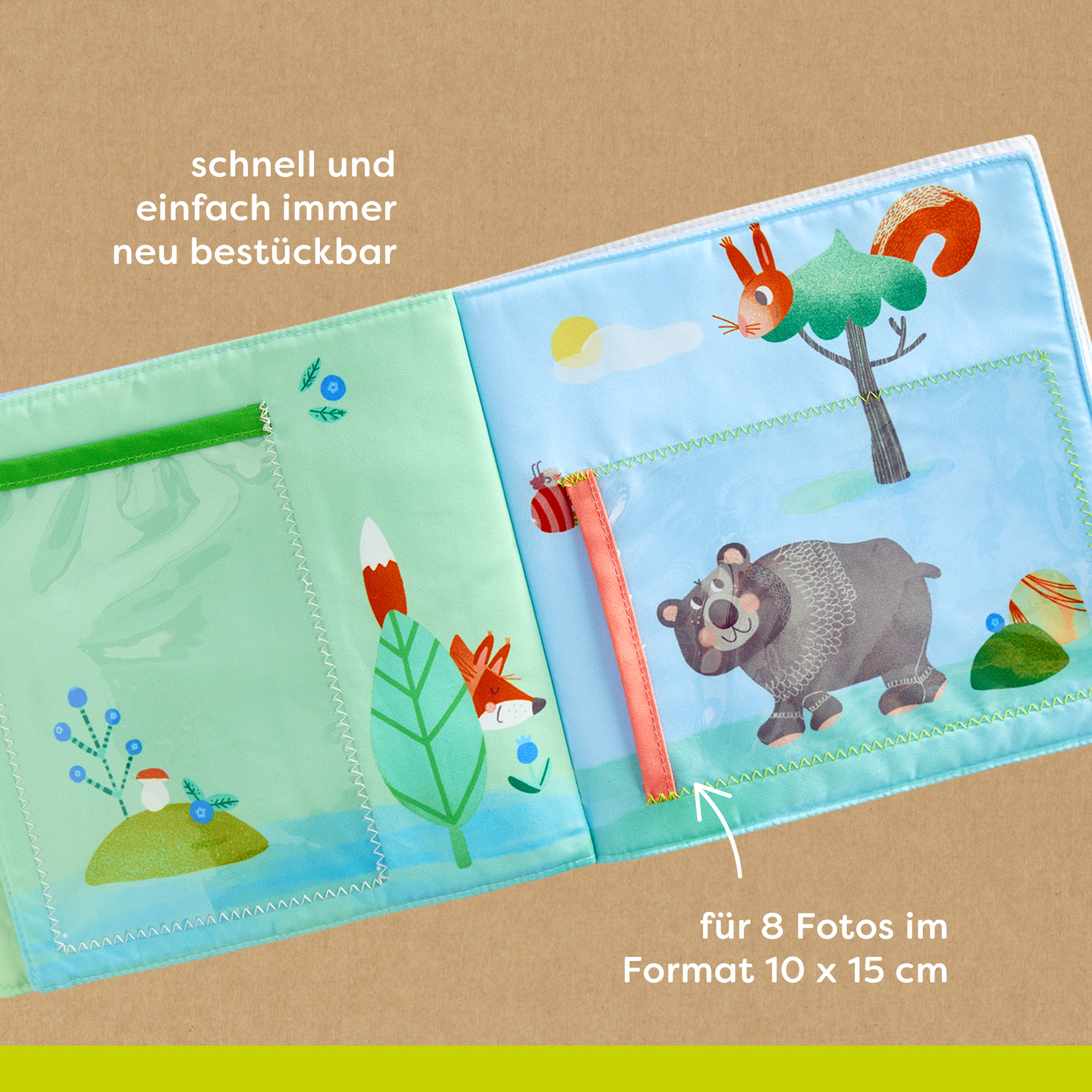 Kto sa to smeje? Či už je to mama, otec, starí rodičia, súrodenci alebo iní blízki... bábätká sú uchvátené známymi tvárami. Samozrejme, že ich potešia aj fotky zvieratiek či iných vecí. Fotografie vo vreckách sa dajú jednoducho znova a znova meniť, čím je fotoalbum stále pútavý a ponúka nekonečné možnosti na rozhovory a rozprávanie príbehov s malými prieskumníkmi.