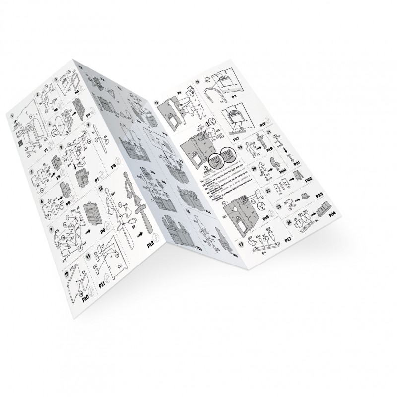 Zostavte drevené diely a postavte si vlastnú miniatúrnu kaviareň. Vytvorte si útulnú atmosféru pomocou detailne spracovaných prvkov – lepte, strihajte a umiestňujte nábytok, doplnky, rastliny aj zákazníkov presne podľa vašej predstavy. Vďaka očíslovaným dielom a prehľadnému návodu je skladanie jednoduché a zábavné.