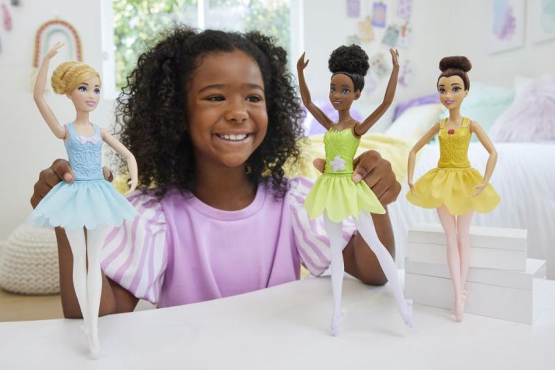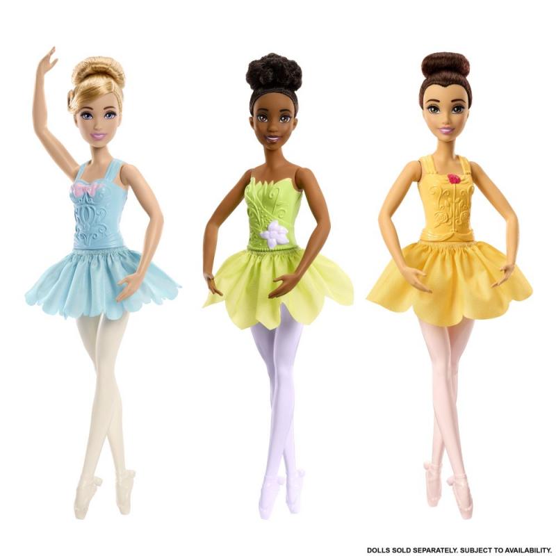 Táto bábika baletka Disney Princess prináša baletné princezné, ako sú obľúbené Popoluška, Bella a princezná Tiana. Každá bábika má upravené vlasy v štýle baletky, točivú sukňu a ruky a nohy v baletných pózach. Bábiky sa predávajú samostatne podľa aktuálnej ponuky.