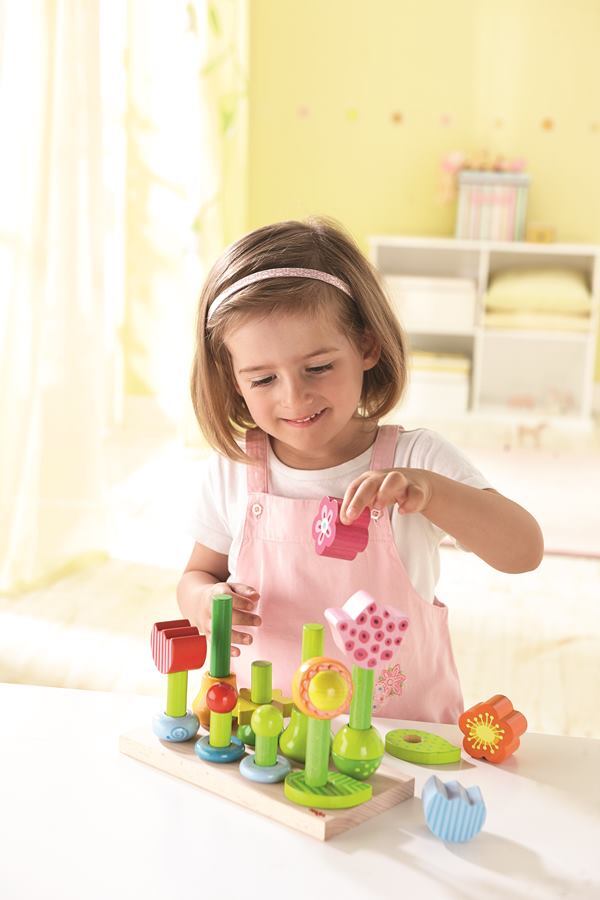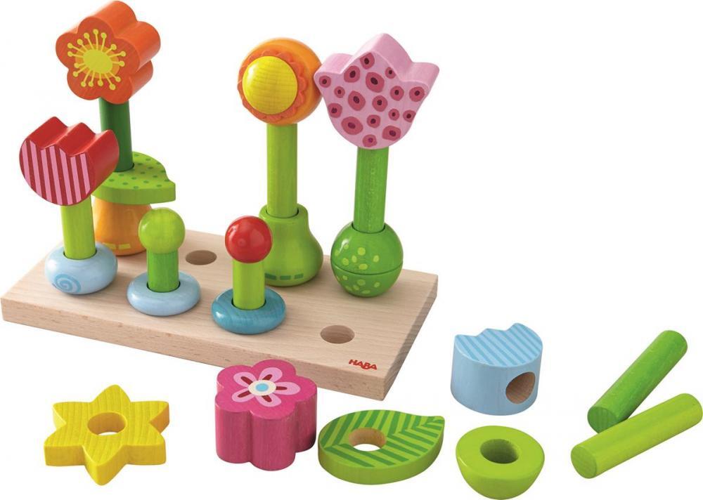 Keď príde jar, v záhradách vykvitnú prvé kvety. Ale s touto kvetinovou záhradkou už nemusia malí záhradníci čakať na jar. Vytvoríte si jednoducho vlastnú záhradku, ktorá hýri farbami. Jednotlivé dieliky môžu deti poskladať podľa vlastnej fantázie, záhradka tak bude zakaždým trochu iná. Hra je nielen zábavná, ale tiež podporuje jemnú motoriku a kreativitu. Variabilná hra pre deti od 18 mesiacov. Obsah balenia: 25 drevených dielikov, 1 základná doska. Rozmery balenia sú 29 x 21,3 x 9,4 cm. Vyrobené v Nemecku.