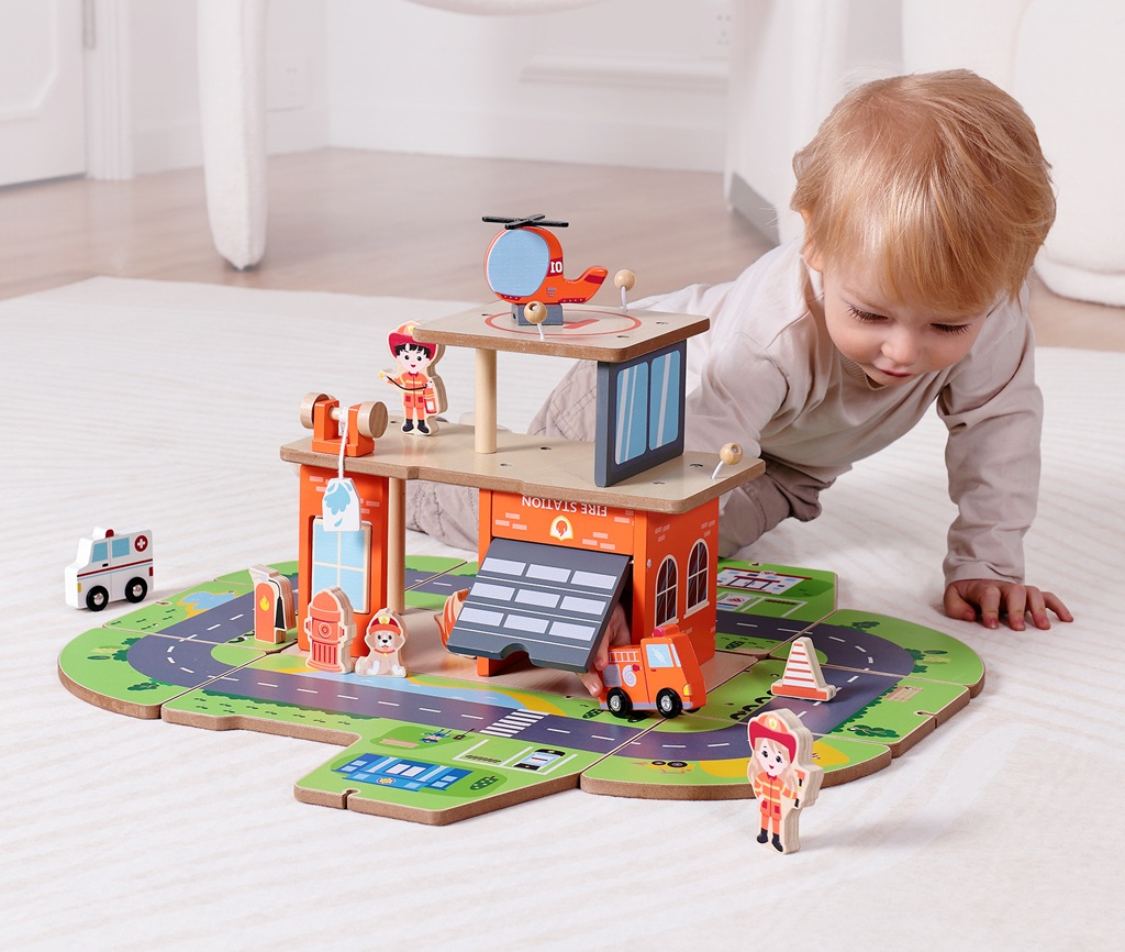 2Kids Toys Drevená stanica Hasiči 2 v 1. Hasičská stanica a Auto. Priprav sa na akciu! Tento unikátny výrobok spája dve obľúbené detské hračky do jedného úžasného zážitku. Detailná hasičská stanica ponúka výjazdové vráta, cestu, riadiace centrum, parkovacie miesta, záchranárske vybavenie pripravené na každú núdzovú situáciu, figúrky hasičov, vozov, psa a ďalšie. Potrebujete stanicu premiestniť inam? Potom ju zložte a premeňte na štýlové hasičské auto, ktoré môže okamžite vyraziť na miesto požiaru! Ideálna hračka pre malých hrdinov, ktorí milujú dobrodružstvo, stavanie a záchranu! Hlavné vlastnosti: podnecuje fantáziurozvíja jemnú motorikuučia deti tímovej spolupráciauto aj hasičská stanica v jednomobsahuje 13 dielov