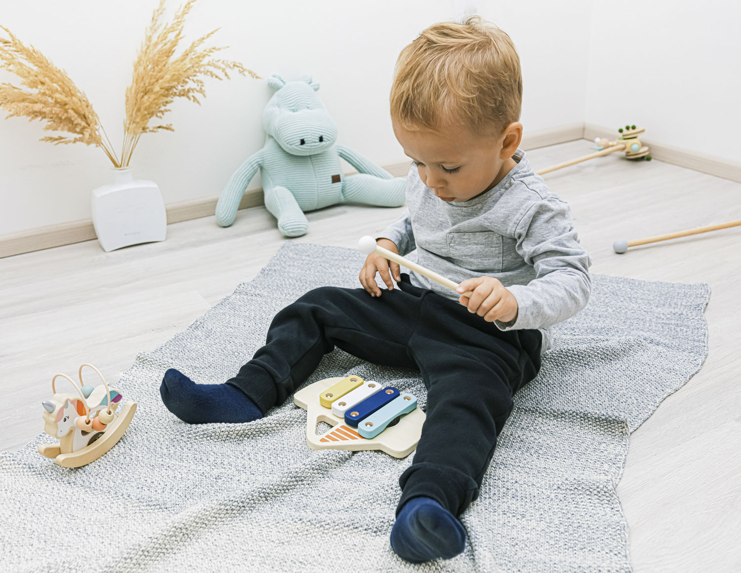 Xylofón rozvíja hudobný sluch dieťaťa, ktoré sa vďaka tejto hračke zoznámi s prvými tónmi a melódiami. Je to tiež skvelý nástroj na rozvoj motoriky, predstavivosti a kreativity. Je vyrobený z prírodného dreva a farieb na vodnej báze.