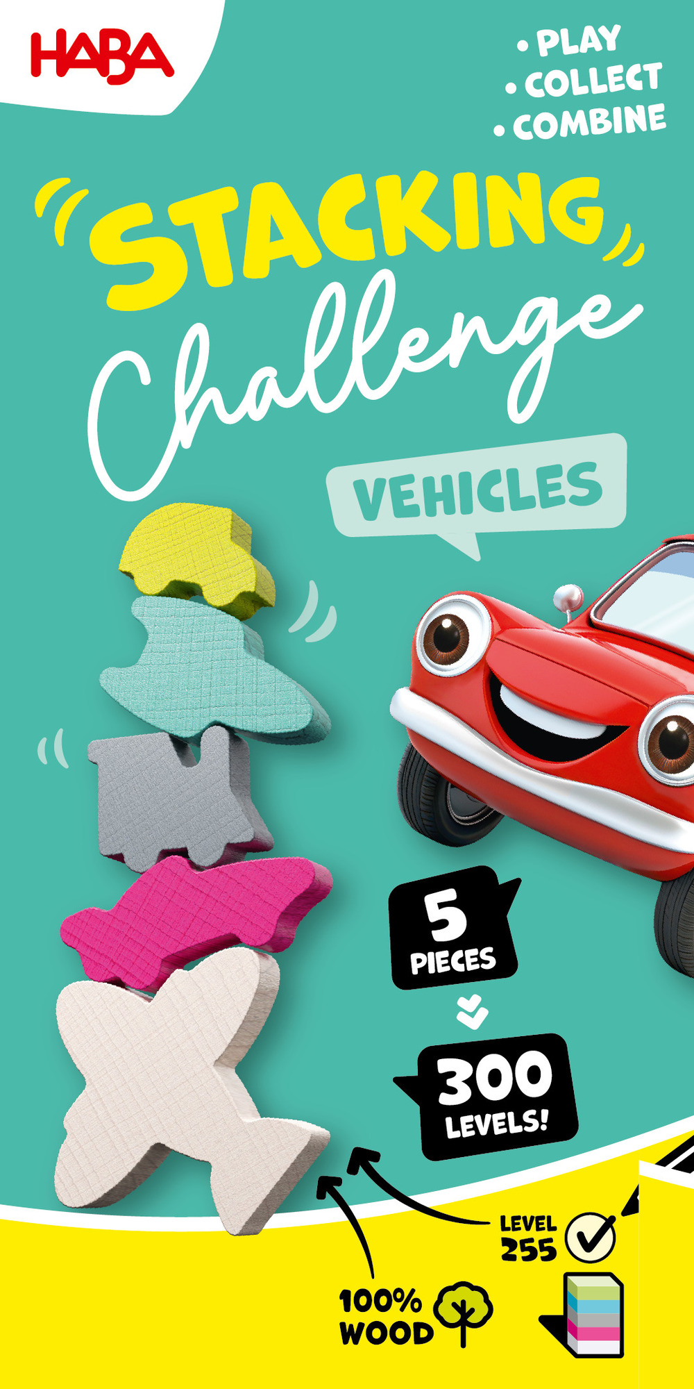 Haba Dynamická zábavná hra Stacking Challenge Doprava 5 figúrok 300 zadaní