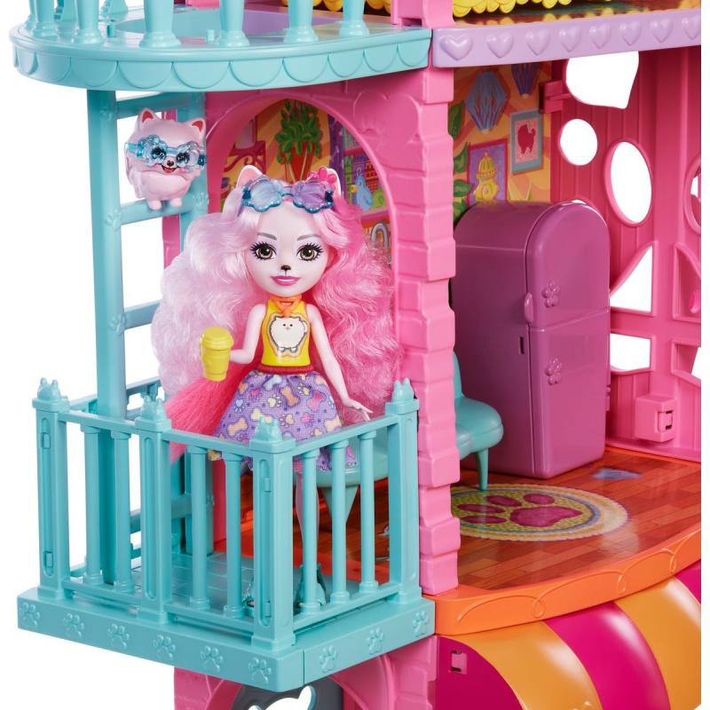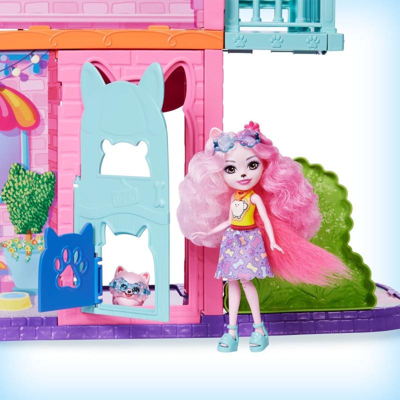 Herný set Enchantimals™ Bytík v meste (70 cm) je ideálnym miestom na posedenie po náročnom dni. Vďaka 3 poschodiam, 6 hracím plochám as viac ako 15 doplnkami je tento set plný nekonečného hrania. Súčasťou je aj bábika Palmer Pomoranská (15 cm) a jej najlepší zvierací maznáčik, s ktorými si deti môžu prehrávať množstvo príbehov.