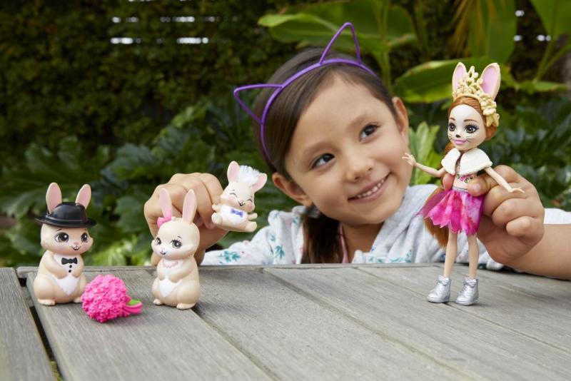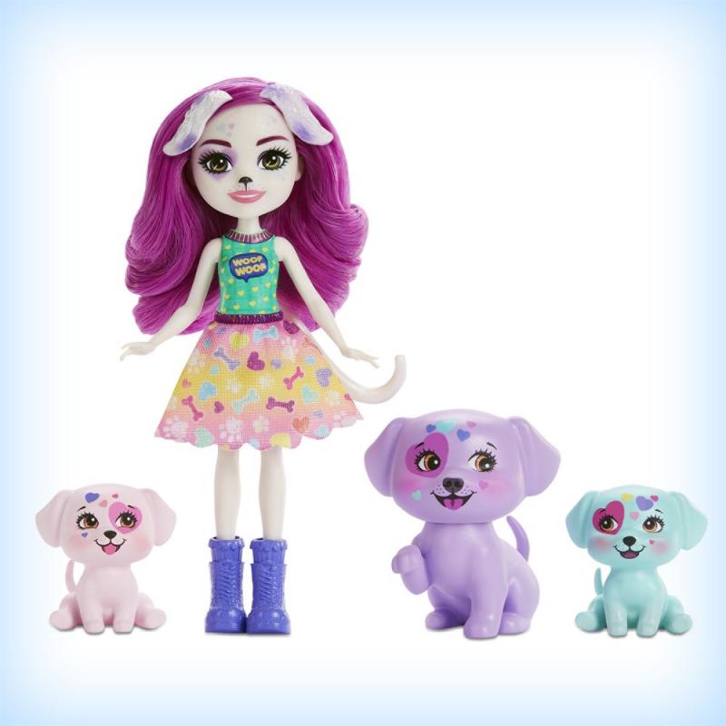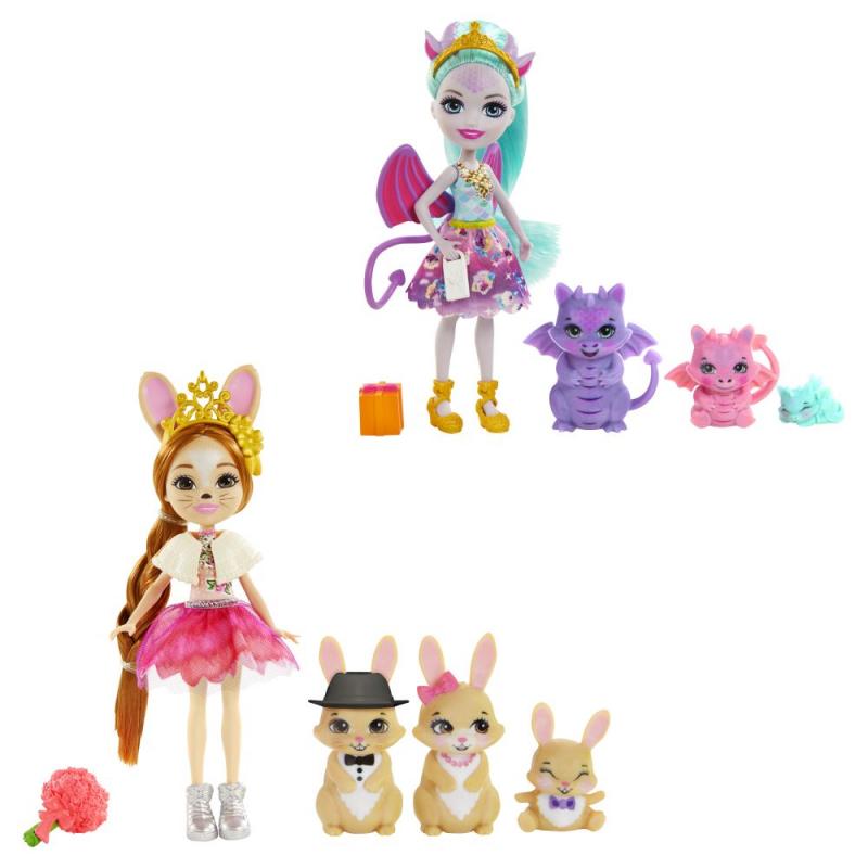 Zoznámte sa s Enchantimals™, partiou roztomilých bytostí, ktoré majú osobitné puto so svojimi maznáčikmi. Tieto sety Enchantimals™ Rodinka obsahujú bábiku (15 cm) a 3-4 mazlíčkov. Detičky budú zbožňovať ich rozkošné štýly a krásne dlhé vlasy. Figúrky zvieratiek sú každá výnimočná svojím jedinečným vzhľadom. Nazbierajte ich všetky a rozšírte si svoj čarovný svet Enchantimals™! Predávajú sa samostatne podľa aktuálnej ponuky. Obsahuje bábiku v módnom oblečení s doplnkami a 3-4 figúrky zvierat. Farby a vzhľad výrobku sa môžu líšiť.