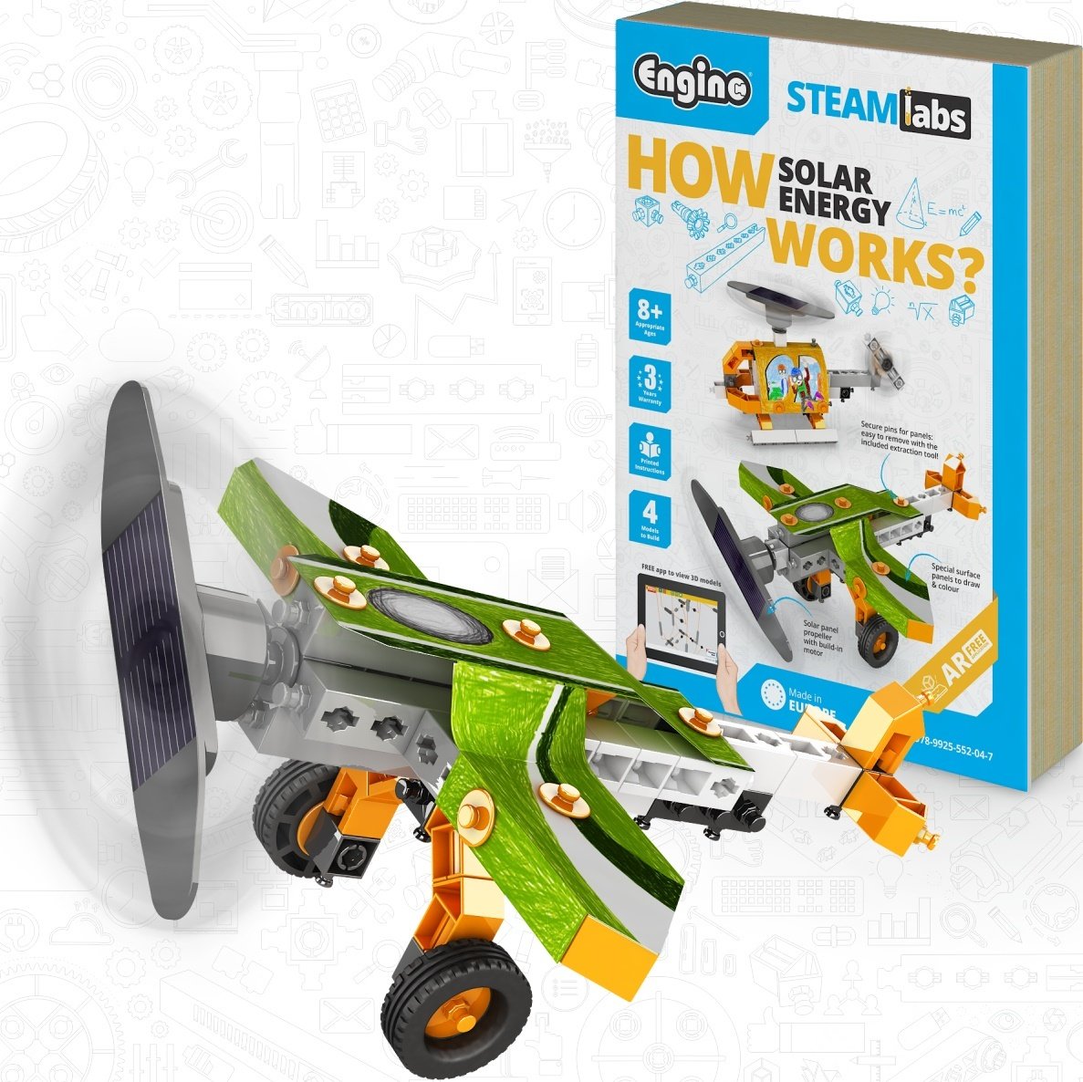 Predstavujeme podmanivú hračku „STEM LABS – How Solar Energy Works", pozoruhodný doplnok, ktorý podnieti zvedavosť a učenie vášho dieťaťa. Táto hračka, vytvorená ako súčasť inovatívnej série STEAM LABS, hladko spája vedu, technológiu, inžinierstvo, umenie a matematiku, aby vytvorila pohlcujúci zážitok z učenia. Séria STEAM LABS zahŕňa najnovšie pedagogické trendy a kladie dôraz na spojenie predmetov umenia (A- art) a STEM. Táto hračka, ktorá uznáva kľúčovú úlohu kreativity v procese inžinierskeho dizajnu, podnecuje inšpiratívnu kreativitu vášho dieťaťa. Vďaka jedinečnému prístupu sa v každej súprave spája podmanivá hračka s knihou Teória a aktivity, pričom obe sú premyslene spojené dohromady. Vonkajšia časť škatule zobrazuje knihu Teória a aktivity, ktorá je súčasťou hračky. Vnútri vaše dieťa objaví hárky papiera s vopred definovanými náčrtmi, ktoré ponúkajú praktickú príležitosť maľovať, strihať a pripájať prvky k svojim modelom. Kniha Theory & Activity sa ponorí hlboko do predmetu a pútavým spôsobom odhaľuje teóriu slnečnej energie. To, čo odlišuje túto sériu, je zahrnutie inteligentných experimentálnych aktivít v súlade s každou témou. Na zvýšenie zážitku je k dispozícii bezplatná aplikácia rozšírenej reality (AR), vďaka ktorej je učenie interaktívne. Vychovávajte ich zvedavého ducha s touto komplexnou a príjemnou sadou. Pripravte sa na hodiny učenia, objavovania a inšpirácie.