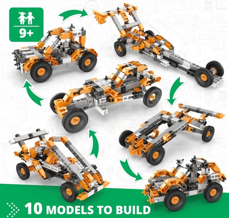 Autá alebo automobily sú pravdepodobne najbežnejším spôsobom prepravy ľudí a tovaru. Môžu sa líšiť veľkosťou a dizajnom, ale všetky sú definované ako motorové vozidlá, ktoré jazdia predovšetkým po cestách a majú kolesá. Autá sa začali globálne používať v 20. storočí a naše rozvinuté ekonomiky sú na nich závislé. Deti sa učia STEM a počas budovania modelov a experimentovania môžu odpovedať na nasledujúce otázky: Kto bol vynálezcom auta? Aké sú základné časti auta a ako fungujú? Aké dôležité sú bezpečnosť a pohodlie pre cestujúcich? Ktoré fyzikálne zákony potrebujú automobiloví inžinieri pozna? Ktoré sú najpopulárnejšie motoršporty? Čo je mechanická výhoda? Ako fungujú piesty vo vnútri motora? Aká je úloha prevodovky? Ako dizajn ovplyvňuje výkon? Čo je uhol zlomu? Prečo malé autá pomáhajú v dopravných zápchach? Čo sú airbagy a protiblokovacie brzdy? Počet dielov v balení: 140 Pre vek 8-16+ rokov