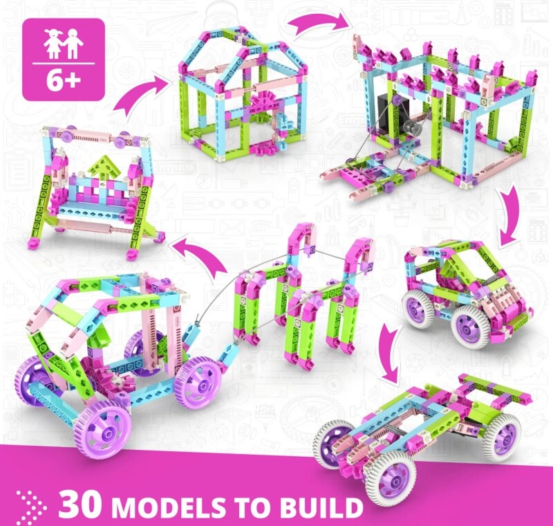 Vzbudiť záujem detí, najmä dievčat, o stavebníctvo a strojárstvo môže byť dosť náročná úloha. Séria CREATIVE BUILDER - Designer tento problém rieši prepojením nápaditej hry s tvorbou 3D modelu. Živé farby fialovej, fuchsiovej, svetlozelenej a nebesky modrej určite zaujmú našich najmenších a podnietia ich, aby preskúmali svoju tvorivú stránku.