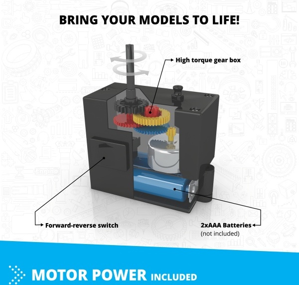 Kreatívna stavebnica Engino, ktorá pomáha rozvíjať myslenie, priestorové videnie a navrhovanie v 3D priestore. Oživte svoje výtvory a sledujte, ako sa pohybujú pomocou motora s prevodovkou s vysokým krútiacim momentom. Postupujte podľa farebného návodu, kde je popísaná časť produktov a zvyšné potom online alebo v 3D aplikácii zdarma na stiahnutie. Zostavujte si aj vlastné výtvory podľa vašej fantázie a pochváľte sa nimi nám alebo svojim priateľom. Celá stavebnica je uložená v plastovom kufríku pre ľahké skladovanie a prenášanie. Jednotlivé diely sa na seba jednoducho nacvakávajú. ENGINO CREATIVE ENGINEERING PRE MALÝCH KONŠTRUKTEROV Séria Creative Engineering inšpirujte deti, aby urobili prvé kroky v oblasti strojárstva, pomocou rozmanitej tematickej hračky, ktorá rozvíja kritické zručnosti STEM. Naučia sa napríklad myslieť, navrhovať a stavať v 3D, a to hľadaním kreatívnych riešení skutočných technických problémov. Táto súprava obsahuje strhujúce experimenty a aktivity, krátky kvíz na preverenie vašich vedomostí a náročné stavebné cvičenia. Súčasťou je aj pracovný zošit, ktorý pomôže vášmu dieťaťu zaznamenať si výsledky a uzavrieť experimenty pre autentický zážitok z inžinierstva STEM. Vhodné pre deti od 8 rokov. Skladujte bezpečne v plastovom boxe, farba rukoväte sa môže líšiť. Stavebnica Motorized Maker 60v1 obsahuje: 223 dielov a zostavíte si z nich 60 úžasných technických modelov ako vozidlo Formule 1, sklápačku, bager, vesmírnu loď, štvorkolku, klokana a mnoho ďalších.