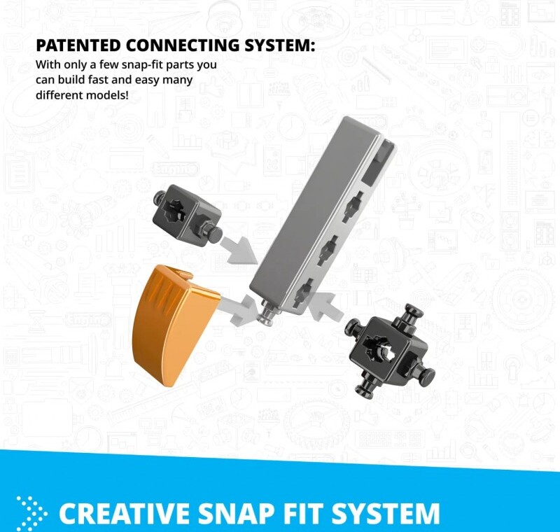 Séria INVENTOR MECHANICS má tematický prístup s možnosťou viacerých modelov a predstavuje pôsobivý hlavný model. K systému ENGINO® patria patentované komponenty, ktoré zvyšujú estetické aj technické vlastnosti. Medzi tieto časti patria vysoko precízne kolesá, mechanizmy a zaklapávacie zakrivené povrchy.