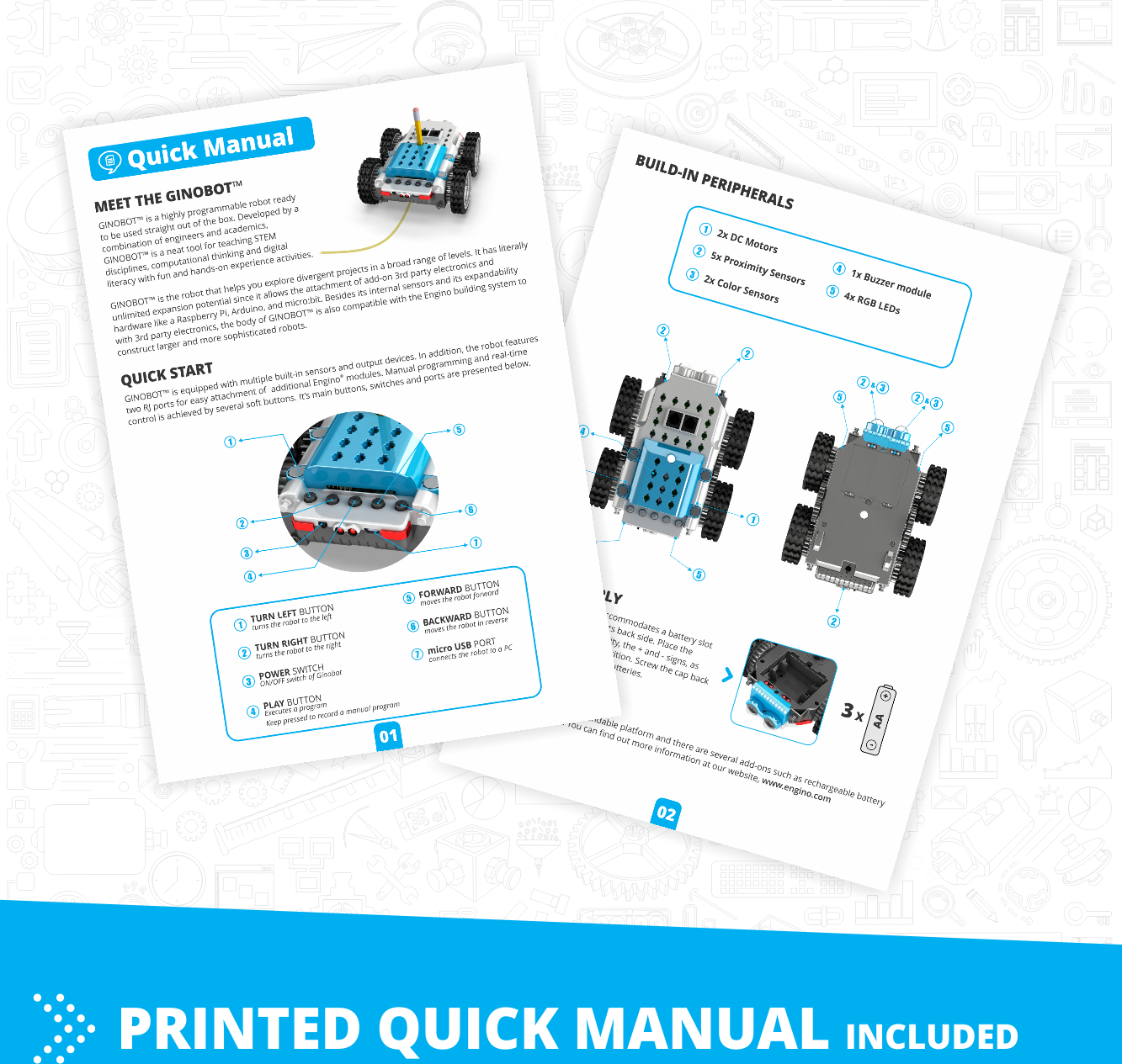Predstavujeme INVENTOR ROBOTIZED – GinoBot s extra motorom a 10 bonusovými modelmi! Tento špičkový robot je ideálny na pestovanie zvedavosti a kreativity vášho dieťaťa. Séria INVENTOR MECHANICS, navrhnutá s tematickým prístupom a možnosťami viacerých modelov, posúva učenie do nových výšin. GinoBot, vrchol tejto série, ponúka pôsobivý hlavný model a knižnicu patentovaných komponentov. Medzi tieto komponenty patria presné kolesá, mechanizmy a zaklapávacie zakrivené povrchy, ktoré zlepšujú estetické aj technické vlastnosti. GinoBot je viac než len robot – je to príležitosť na praktické učenie. GinoBot, vyvinutý tímom inžinierov a akademikov, slúži ako výnimočný nástroj na výučbu výpočtového myslenia a digitálnej gramotnosti pútavým spôsobom. Jeho programovateľná povaha podnecuje objavovanie a umožňuje študentom pustiť sa do rôznych projektov na rôznych úrovniach. GinoBot sa prispôsobuje rôznym štádiám učenia, od jeho funkcie plug-and-play, ktorá je ideálna pre hodiny algoritmického a výpočtového myslenia, až po bezproblémovú integráciu so skutočnými programovacími jazykmi, ako sú C/C++ a Python. Či už predstavujete základy kódovania alebo sa ponoríte do pokročilej elektroniky, GinoBot zostáva pútavým a vzdelávacím spoločníkom.
