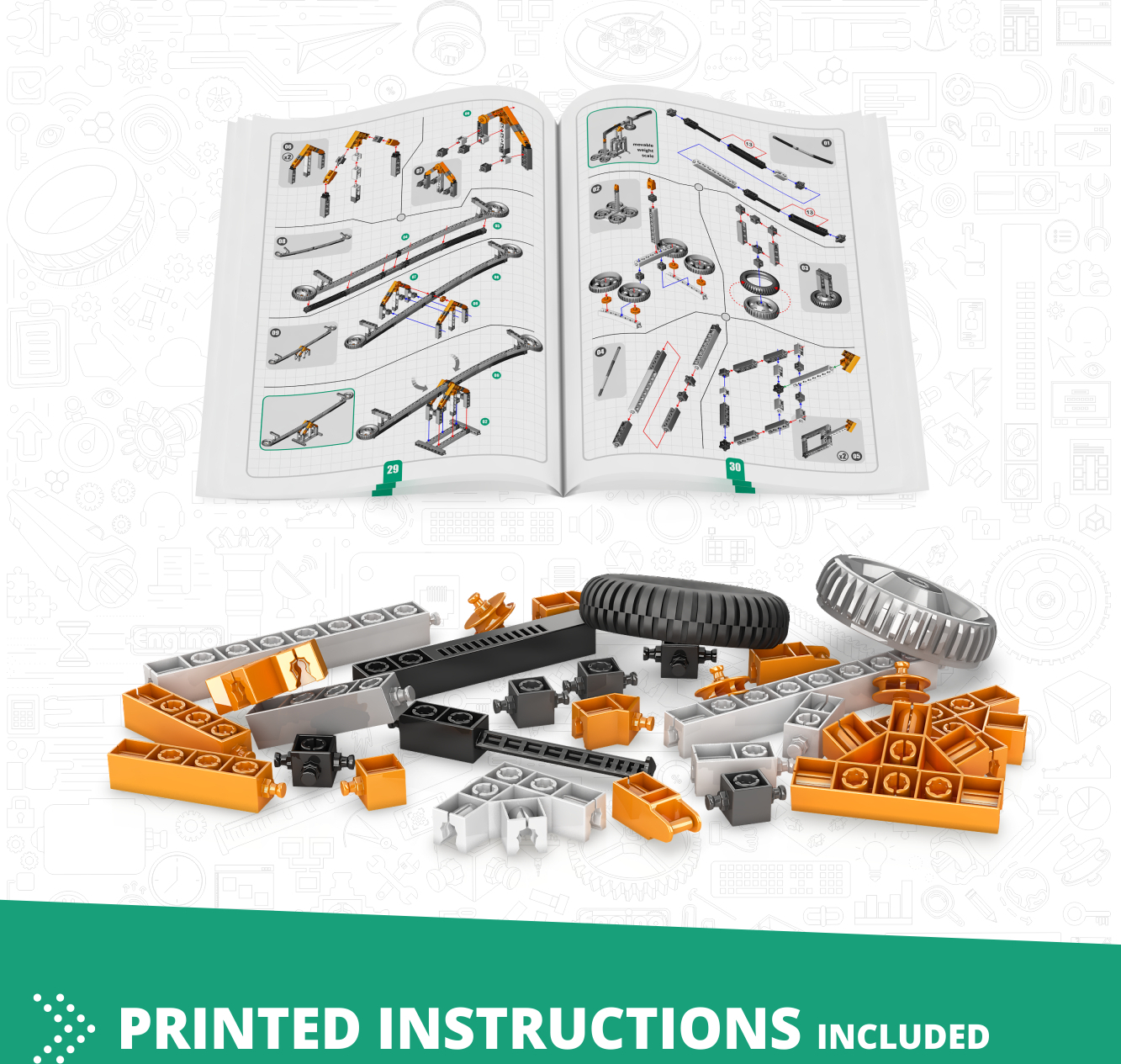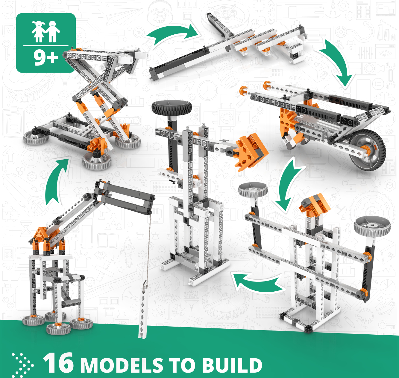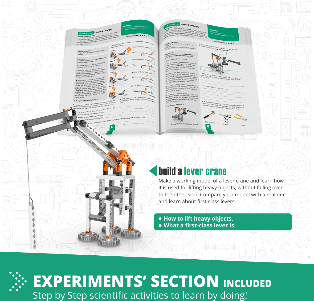 Odhaľte tajomstvá mechaniky so súpravou STEM MECHANICS – Páky, prepojenia a štruktúry od Engina. Táto komplexná stavebnica uvádza mladých staviteľov do sveta strojárstva prostredníctvom interaktívnych projektov. Od budovania funkčných pák až po vytváranie zložitých štruktúr, každý projekt zlepšuje zručnosti pri riešení problémov a podporuje praktické učenie. Vybavte svoje dieťa základnými znalosťami STEM a zároveň si užívajte vzrušenie zo stavby. Zvýšte svoje chápanie schopnosti pák zosilňovať silu a vytvorte zložité modely pohybu prostredníctvom vzájomne prepojených pák. Odhaľte spektrum síl ovplyvňujúcich štruktúry a inovatívne techniky zmierňovania. Zostavte si 16 funkčných modelov – od hojdačiek po dvojpodlažné mosty – každý spolu s dostupnými online pokynmi alebo montážnymi pokynmi v brožúre. Brožúra sa ponorí do vedeckých princípov, praktických experimentov a dokonca ponúka aj kvízovú časť. Posilnite svoje pochopenie mechaniky prostredníctvom pútavých interaktívnych vzdelávacích skúseností. Pripravte sa na zvládnutie mechaniky s touto úchvatnou sadou!
