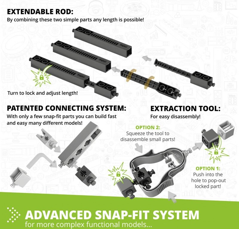 Klimatické zmeny a globálne otepľovanie vyzývajú vedcov, aby konali a zachránili našu planétu znížením emisií uhlíka. Slnko môže poskytnúť bezplatnú energiu pre všetky naše potreby, ale musíme ju premeniť na užitočnú formu. Táto sada obsahuje jeden 3V solárny panel, ktorý poháňa elektrický motor, spolu s návodom na 16 solárne napájaných modelov, ako je chopper auto, ventilátor, lietadlo, robot a navijak. Jednoduché pokyny na zostavenie všetkých modelov nájdete buď online, alebo v priloženej brožúre. Brožúra poskytuje podrobné vysvetlenia rôznych použitých vedeckých princípov a zahŕňa inovatívne experimentálne aktivity pre praktické učenie. K dispozícii je aj sekcia Kvíz, v ktorej môžete otestovať svoje novonadobudnuté vedomosti!