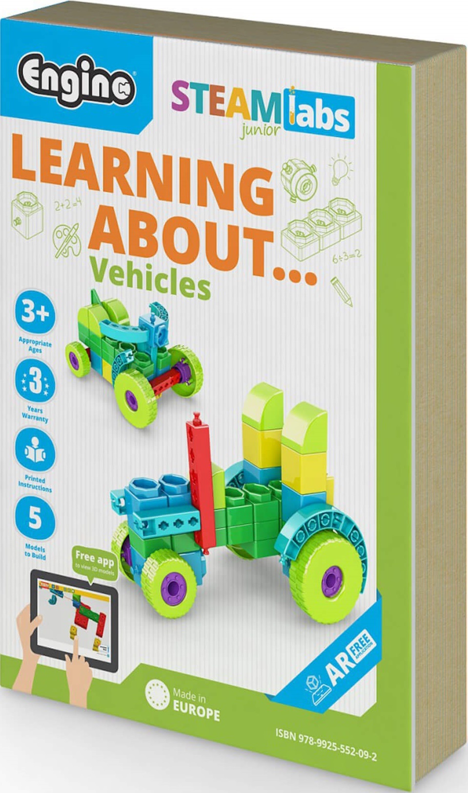 Malí študenti skočia za volant na vysokorýchlostné preteky s Maxom, najrýchlejším autom v okolí, keď sa pripravuje na svoju prvú veľkú pretekársku výzvu. Po ceste sa stretnú a postavia: náves, traktor, štvorkolku, športové auto a SUV. Naša stavebnica vozidiel je príbehové dobrodružstvo, v ktorom malí žiaci objavujú úžasné fakty o svojich obľúbených cestných a terénnych vozidlách a zároveň rozvíjajú kľúčové zručnosti STEAM (veda, technika, inžinierstvo, umenie a matematika), ako je koordinácia ruka-oko, priestorové myslenie a tvorivosť. Keď dokončia stavanie, deti si môžu zložiť prilbu a vziať si do ruky pastelky a ozdobiť si svoje vlastné prichytávacie kryty pre svoje vozidlá. Deti navyše získajú: plnofarebnú brožúrku s nezvyčajnými faktami o ich obľúbených vozidlách, tvorivé umelecké aktivity, ako sú spojovanie bodiek, vyfarbovanie a bludisko, zábavné cvičenia na párovanie a počítanie, super jednoduché návody na stavanie pre malé ručičky a rastúce mysle. Hračky Engino STEAM sú kompletné vzdelávacie nástroje STEAM navrhnuté tak, aby pripravili mladých študentov na celoživotné vedecké objavy. Počet dielov v balení: 39 Pre vek 3-7