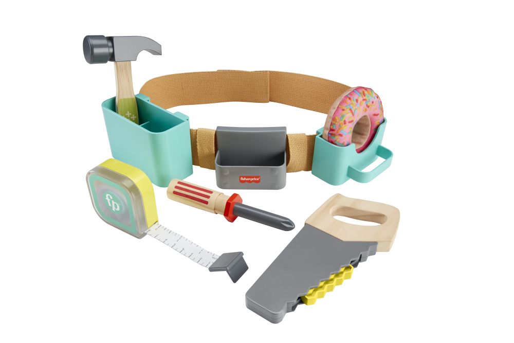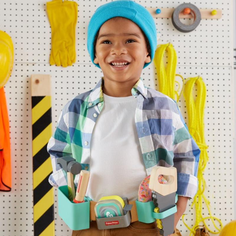 Váš malý staviteľ bude mať po dome dômyselné "opravovanie" vecí so sadou rolí na náradie Fisher-Price® DIY Tool Belt. Textilný opasok na náradie má pohodlné úložné otvory pre všetky ich nástroje, vrátane předstíracího kladivá, skrutkovača, chladné píly, ktorá vydáva zvuky pri "rezanie", a skutočne fungujúci, zaťahovací meracie pásky. Dodáva sa dokonca s látkovým šišiek, ktorý odmení vášho predškoláka za dobre odvedenú prácu. Či už si hráte v garáži alebo pracujete na projekte zlepšenie domácnosti, váš obľúbený asistent bude po vašom boku s vlastnými skvelými nástrojmi!