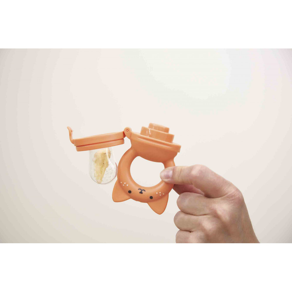 Kaloo Grignoti - Sada podbradníka a kŕmidla veverička je ideálny set pre bábätká, ktoré začínajú objavovať nové chute a textúry jedla. Táto praktická darčeková sada obsahuje krmítko na čerstvé ovocie a zeleninu a ladiaci podbradník, čo z nej robí skvelého pomocníka na obdobie prvých príkrmov. Sada je súčasťou kolekcie Grignoti, ktorá podporuje rozvoj chuti a žuvania a zároveň pomáha pri prerezávaní zúbkov. Použitie kŕmidla (feedera) je veľmi jednoduché: dovnútra stačí vložiť kúsky mäkkého ovocia alebo zeleniny a nechať dieťa samostatne objavovať ich chuť. Malé otvory v silikónovom nástavci uvoľňujú iba šťavu alebo jemné pyré, čím sa eliminuje riziko vdýchnutia veľkých kusov potravy. Ergonomická rukoväť v tvare veveričky je vyrobená zo silikónu a slúži aj ako hryzátko na masáž citlivých ďasien. Set dopĺňa savý froté podbradník s roztomilou výšivkou veveričky, ktorý udrží oblečenie bábätka v čistote počas týchto chutných okamihov. Veľkosť: 22,5 cm Materiál: Bavlna, plast, polyester, silikón Vlastnosti: Bezpečné kŕmenie bez rizika udusenia, podpora jemnej motoriky Údržba: Možno prať v práčke na 30 °C (jemný cyklus) Vek 6m+