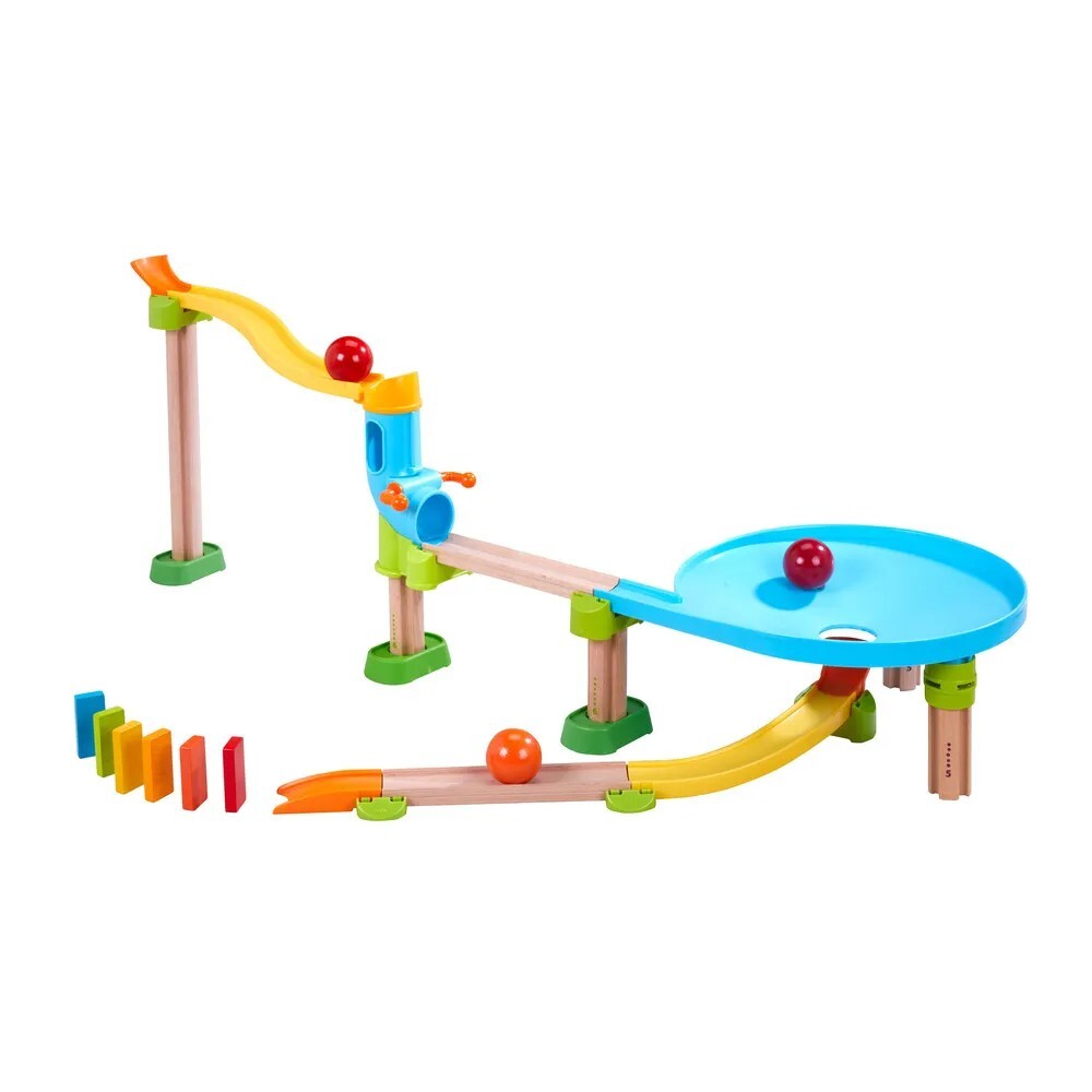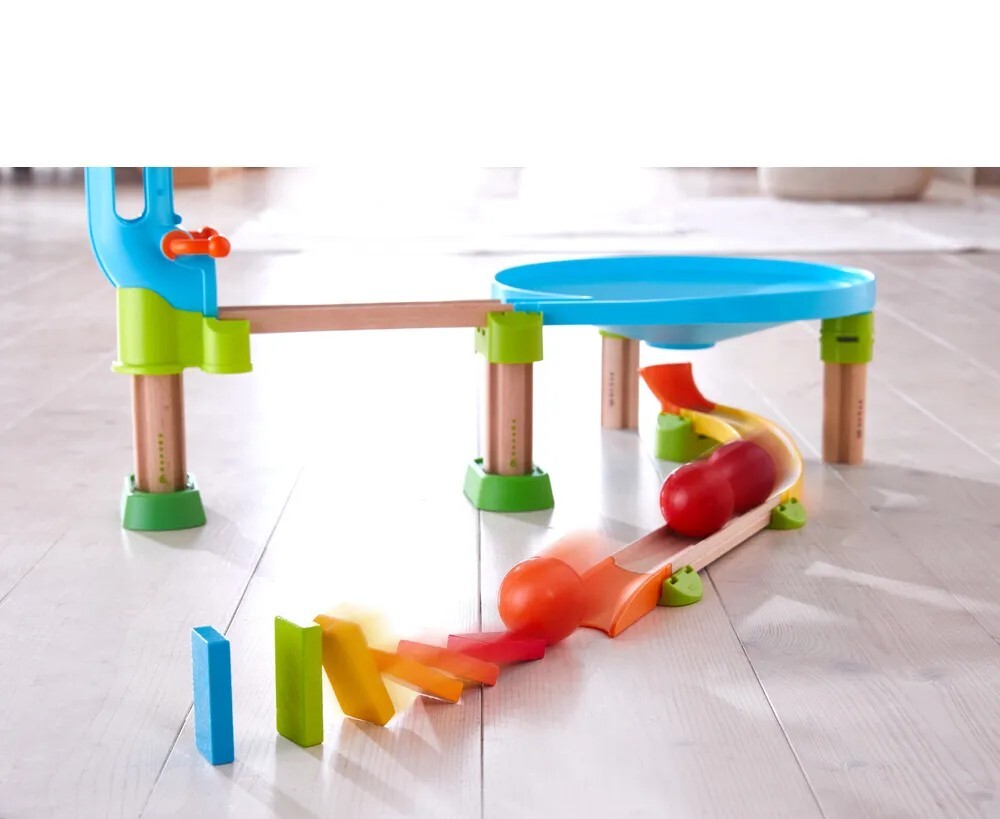 Drevená guľôčková dráha s lievikom, skvelým herným efektom so zberačom loptičiek a dominopadom. Far...zobraziť viac