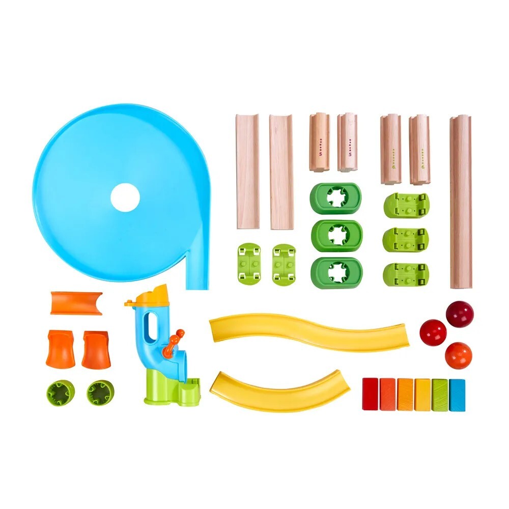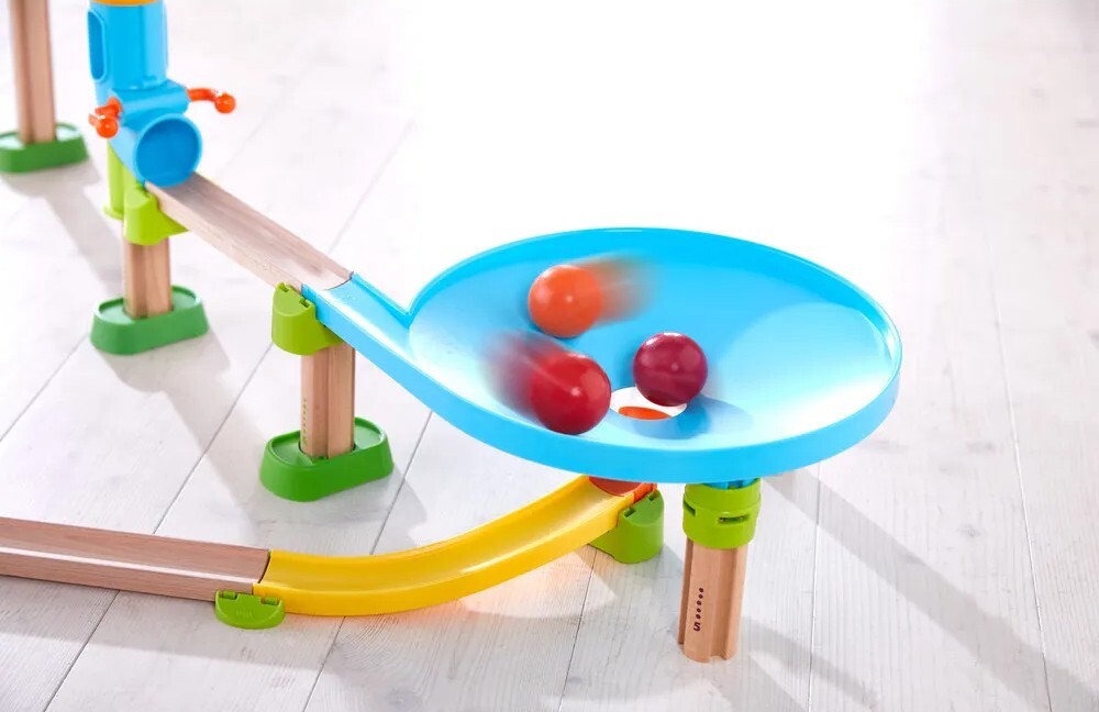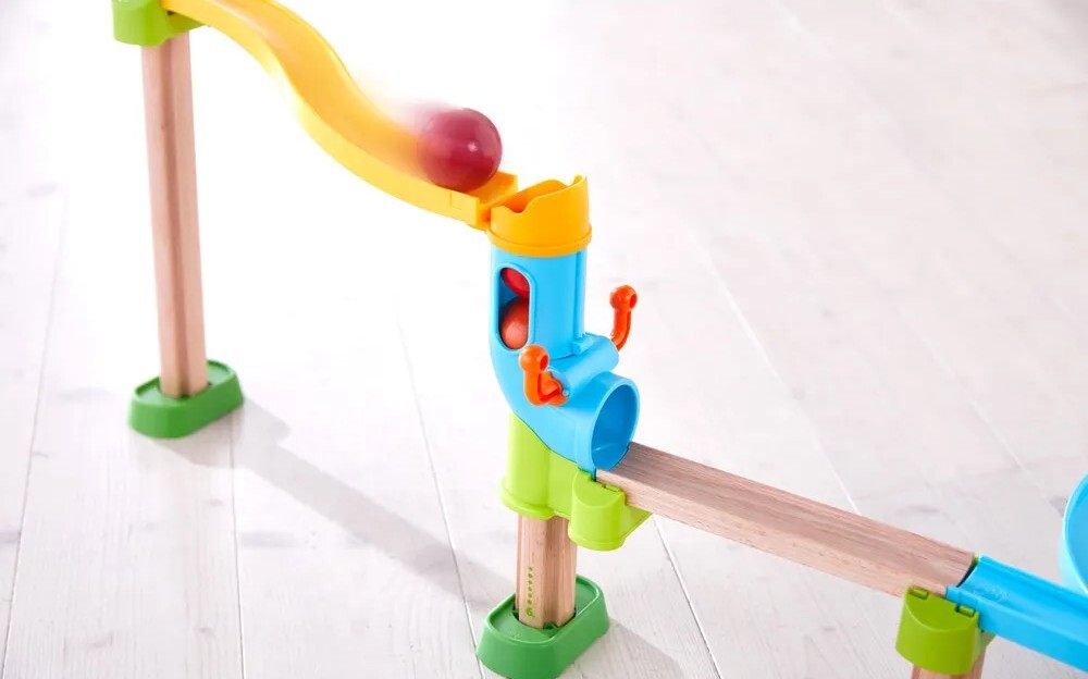 Drevená guľôčková dráha s lievikom, skvelým herným efektom so zberačom loptičiek a dominopadom. Farebný vzrušujúci svet s guľôčkou je určený pre deti už od 2 rokov, všetky časti sú prispôsobené pre malé detské ruky. Stĺpiky majú chytrý nacvakávací systém, nehrozí rozpadnutie dráhy. Vložíte, kliknete a máte hotovo – zostavenie hernej dráhy by bolo ťažko jednoduchšie. Premyslený systém spojovacích prvkov zaisťuje maximálnu stabilitu ako na podlahe, tak vo vzduchu. Postavte dráhu a sledujte ako guľôčka uháňa pestrofarebnou cestou cez rôzne prekážky a nakoniec dobehne do cieľa. Herný systém guľôčkovej dráhy Kullerbü je navrhnutý tak, aby ho bolo možné flexibilne rozšíriť. Výsledkom je celý rad rôznych konštrukčných možností, vďaka ktorým je Kullerbü zaujímavou a rozmanitou hračkou pre deti od 2 do 8 rokov. Všetky súpravy Kullerbü sú vzájomne kompatibilné. Dráha Kullerbü je vyrobená z bukového dreva, preglejky a plastu. Je perfektnou kombináciou drevených a plastových dielov a spája výhody týchto materiálov, vďaka ktorým sa tento robustný herný systém od spoločnosti HABA stane zábavným spoločníkom po celé detstvo.