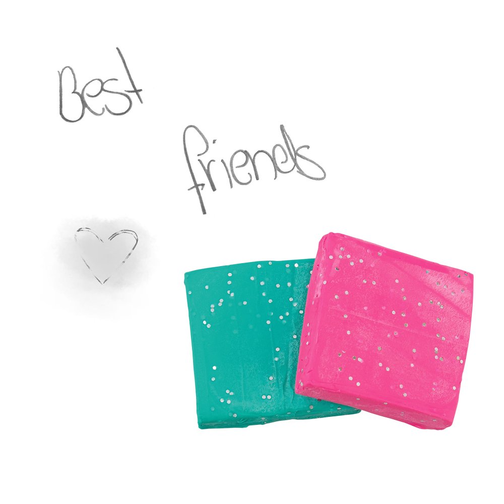 Gumujte a mačkajte! Tvarovateľné gumy v žiarivých farbách ružovej, cyklámenovej, modrej, tyrkysovej, broskyňovej a žltej s trblietkami sú balené v priehľadnej krabičke. Rozmery: 4,5x4,4x1,5 cm