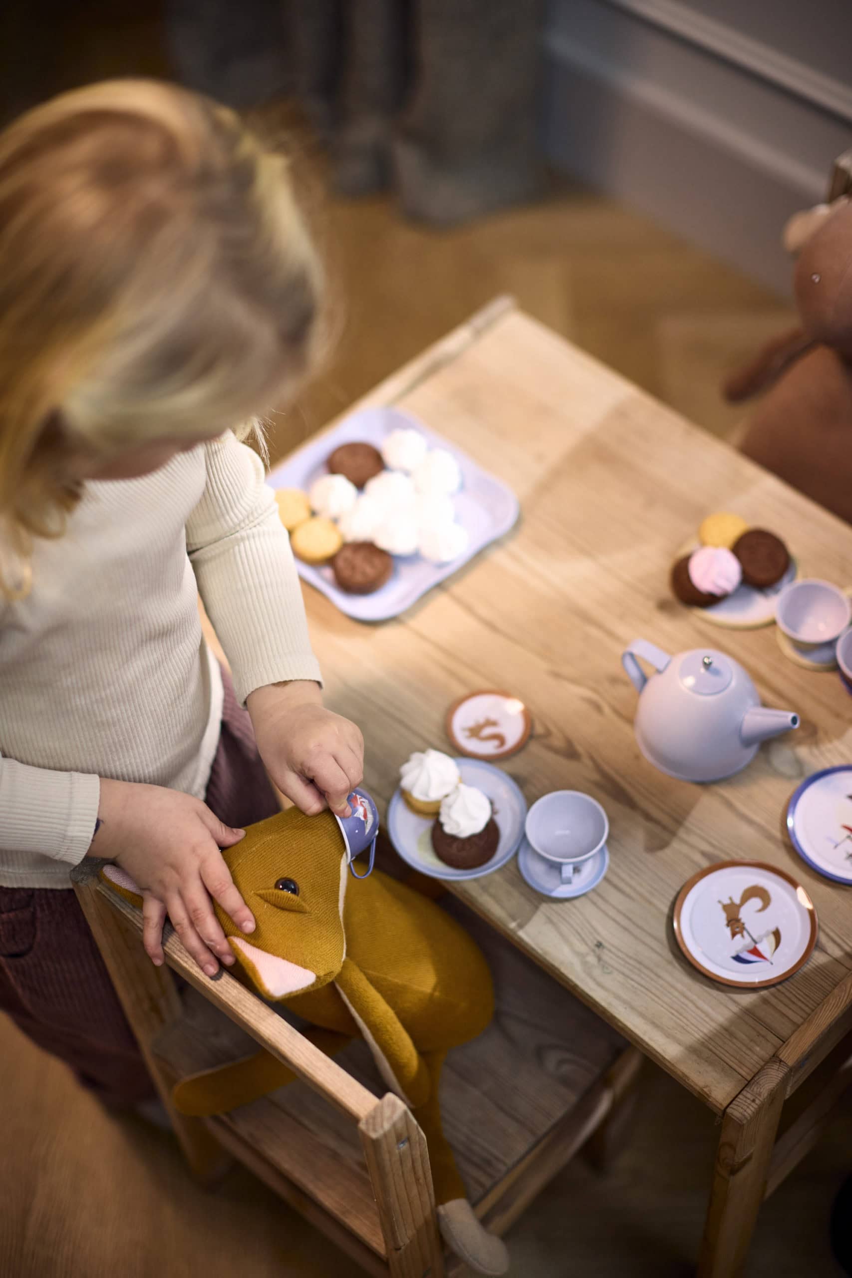 Každé dieťa sa poteší nadčasovej radosti z usporiadania čajového večierka! S týmto pôvabným čajovým setom od FILIBABBA môžu pozvať na zábavu svojich obľúbených plyšových kamarátov, bábiky alebo dokonca mamu a ocka. Set je navrhnutý tak, aby podnecoval fantáziu a hru na roly, prinášal klasickú zábavu do života a zároveň rozvíjal kreativitu, sociálne zručnosti a schopnosť rozprávať príbehy.