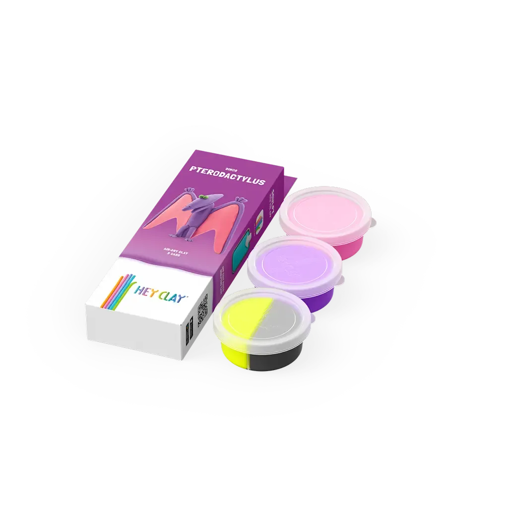 Hey Clay Dinosaury PterodaktylVymodelujte si originálnu postavičku dinosauraPlastelína v pestrých farbách Hey Clay poteší každé dieťa, ktoré miluje svet kreatívneho tvorenia - podporuje jemnú motoriku, predstavivosť a umožní nekonečné formovanie. Po vymodelovaní stačí nechať postavičky zatvrdnúť na vzduchu približne 24 hodín, čím sa premenia na pevné figúrky a sú pripravené na ďalšie dobrodružstvá a hry.Tvoreniu sa žiadne medze nekladúFarebný rozmer zábavy - obsahuje 3 nádoby s mäkkou, jemnou a vońavou plastelínouBezpečné zloženie - netoxická plastelína vhodná aj pre najmenšíchPodporuje rozvoj zručností - modelovanie rozvíja prsty a koordináciuVšestranné využitie - na doma, do školy, na tvorivé dielnePrístupový kód do aplikácie - detičky sa môžu inšpirovať novými nápadmi Ideálny darček - pre predškolákov, školákov alebo kreatívne rodinné chvíle