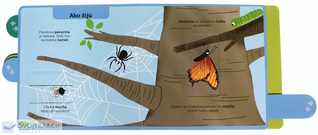 Ako sa pohybuje slimák? Koľko nôh má pavúk a čo všetko dokáže? A vieš, kto sa liahne z vajíčok a kto z lariev? Na stránkach tohto leporela s pohyblivými prvkami sa zoznámiš s najrôznejším hmyzom a ďalšími bezstavovcami. Sú síce malé, ale o to zaujímavejšie, a niektoré sú natoľko prefíkané, že sa dokážu na nepoznanie zamaskovať. Vážne! Neveríš? Tak rýchlo, otvor knižku a so všetkými sa zoznám! Ideálna prvá kniha pre začínajúcich entomológov!