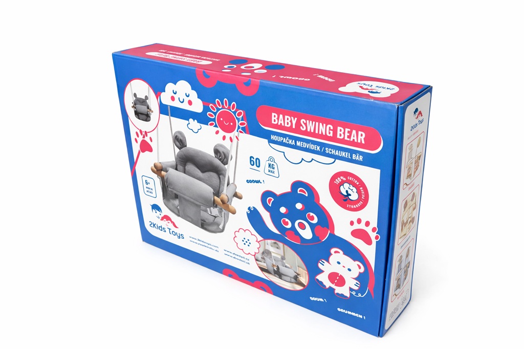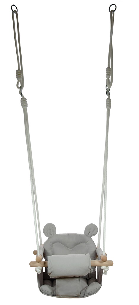 Komfort, bezpečie, zábava... medvedík presne vie čo spokojné bábätká potrebujú! Táto detská hojdačka ponúka nielen množstvo hodín zábavy ale aj aktívny odpočinok. Konštrukcia z bukového dreva a sedátko zo 100% bavlny zaisťujú plné pohodlie a bezpečnosť pri hojdaní. Laná s 2 karabínami sú výškovo nastaviteľné (až 180 cm). Koniec lán je zakončený plastovou poistkou proti ich rozviazaniu. Vďaka tlmeným farbám a jednoduchému dizajnu je hojdačka taktiež brilantným doplnkom do izbičky! Hlavné vlastnosti: nosnosť 60 kgvýškovo nastaviteľné lano (max. 180 cm)plastová poistka proti rozviazaniu lánvyrobené zo 100% bavlnyroztomilý dizajn s medvedíkom