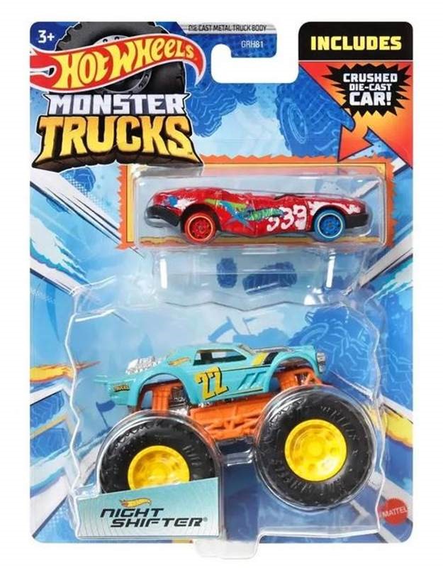 Hot Wheels® Monster Trucks v mierke 1:64 sú z odolného kovu a sú to tie najepickejšie trucky, aké kedy boli vyrobené pre preteky a totálne zničenie protivníka! Každé balenie Hot Wheels® Monster Trucks 1:64 s angličákom obsahuje svetovo preslávený angličák Hot Wheels® v mierke 1:64, ktorý poteší všetkých fanúšikov Hot Wheels®.