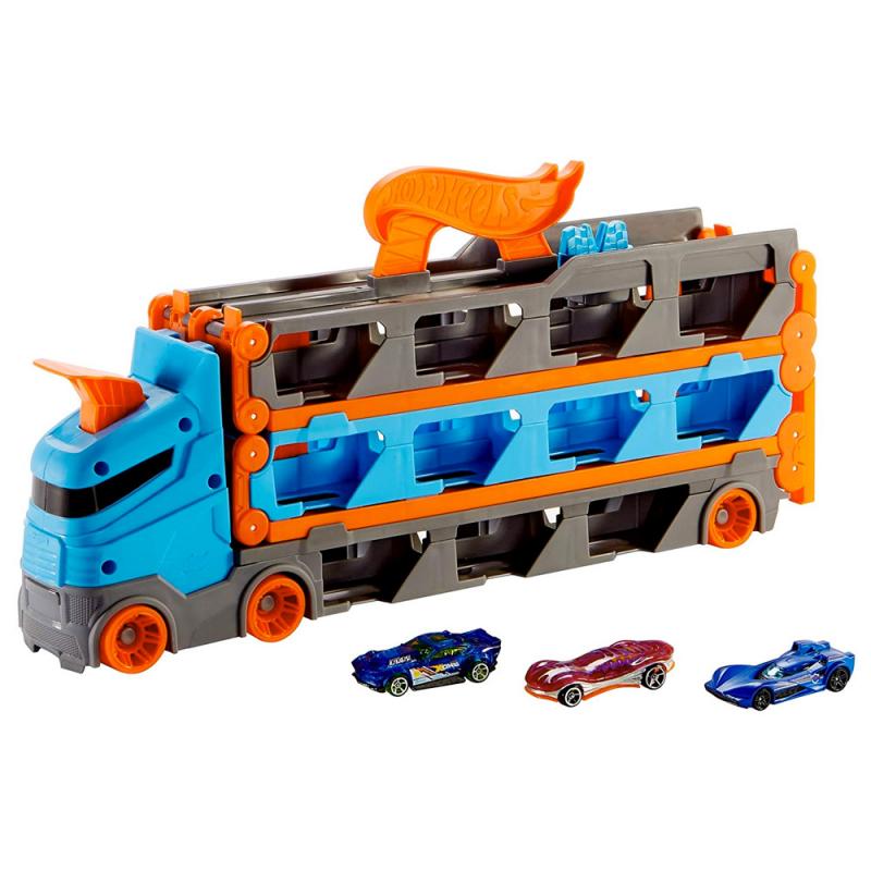 Hot Wheels® Nadupaný ťahač predstavuje nielen revolúciu v skladovaní áut Hot Wheels®, ale aj v pretekaní. Tento ťahač je plný prekvapení! Môžeš doň zaparkovať viac ako 20 áut Hot Wheels®. A keď zatiahneš za zadnú páčku, ťahač sa rozloží na pretekársku dráhu dlhú skoro dva metre! Medzitým sa kabína premení na štartovacie zariadenie, ktoré zvládne vyslať do epickej bitky dve autá naraz. Víťaz potom môže pokračovať v dobrodružstve na ďalších setoch Hot Wheels™ City (predávajú sa samostatne), ktoré sa k dráhe dajú pripojiť. Multifunkčné auto sa dodáva s tromi angličákmi Hot Wheels® v mierke 1:64 a zmestí sa do neho až 19 ďalších (predávajú sa samostatne). Ponúka nekonečnú zábavu deťom vo veku od 4 až do 8 rokov.