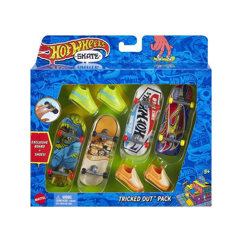Predvádzajte drsné skoky s týmto setom 4 ks fingerboardov a skate topánok. Hot Wheels® a legenda skateboardingu Tony Hawk sa spojili, aby vytvorili epickú kolekciu fingerboardov, ktoré vyzerajú skvele pri brúsení railov a vykonávaní ollies. Set obsahuje štyri rôzne, úžasne štylizované a kompletne zostavené fingerboardy spolu s dvoma rôznymi pármi skate topánok, ktoré je možné striedavo používať so všetkými fingerboardmi. Skate topánky pomáhajú deťom získať cit pri zvládaní kaskadérskych kúskov a salt. Každý set obsahuje jeden exkluzívny fingerboard a pár skate topánok. Každý set sa predáva samostatne v závislosti od dostupnosti. Farby a vzhľad výrobku sa môžu líšiť.