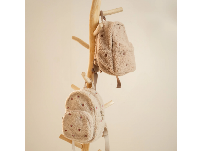 Rozkošný detský batoh z mäkkého plyšového materiálu s kvetinovou výšivkou je ideálnym doplnkom na výlety do prírody i prechádzky mestom. Batoh má nastaviteľné ramenné popruhy a hrudný pás na príjemné nosenie. Držadlo umožňuje prenášanie v ruke. Batoh je vybavený vonkajším vreckom na zips na uloženie drobností a vnútorný priestor s vreckom, elastickým držiakom na pitie a menovkou.
