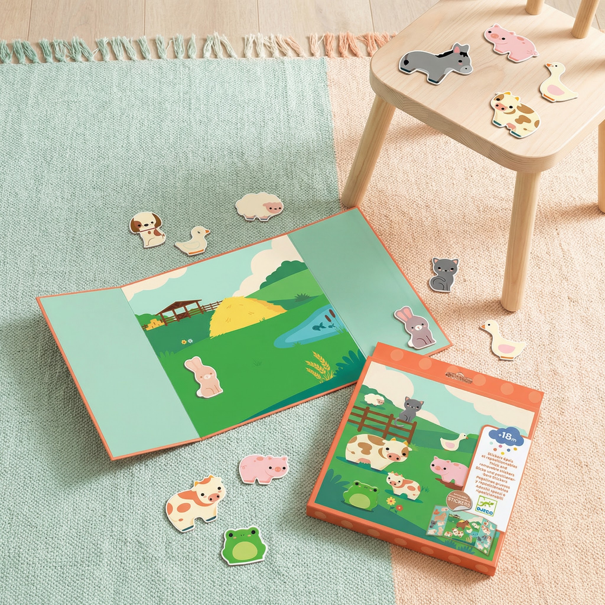 Hrubé odnimateľné nálepky Zvieratá z farmy Prvé nálepky pre najmenších: veľké farmárske zvieratká, ktoré môžeš lepiť znova a znovaHrubé odnímateľné nálepky – Zvieratá z farmy sú jednoduchá aktivita pre malé deti, ktoré milujú zvieratká a samolepky.Dieťa dopĺňa veľký trojdielny obrázok (triptych) a vytvára vlastné farmárske scény pomocou 15 hrubých nálepiek, ktoré sa dajú opakované odlepiť a znovu nalepiť.Rýchly prehľad odporúčaný vek: od 18 mesiacov čo deti robia: dopĺňajú farmársku scénu a vymýšľajú príbehy veľkosť dekoru: približne 43 × 23 cm výhody nálepiek: hrubé, ľahko sa chytajú, opakovane odnímateľné rozvoj: jemná motorika, slovná zásoba, fantáziaObsah balenia 1 trojdielny dekor (triptych) na dotvorenie 15 hrubých odnímateľných nálepiek – zvieratá z farmyAko to funguje Rozlož dekor (triptych) a pozri si farmársku scénu. Vyber nálepku zvieratka a nalep ju na miesto, ktoré sa ti páči. Keď chceš zmenu, nálepku jednoducho odlepíš a presunieš inde. Vymýšľaj príbehy: kto je v maštali, kto ide na dvor a kto sa schoval za plot?Pre koho je pre deti, ktoré začínajú so samolepkami a potrebujú veľké dieliky na cestovanie aj domov – rýchla aktivita bez neporiadku pre malých milovníkov farmy a zvieratiek
