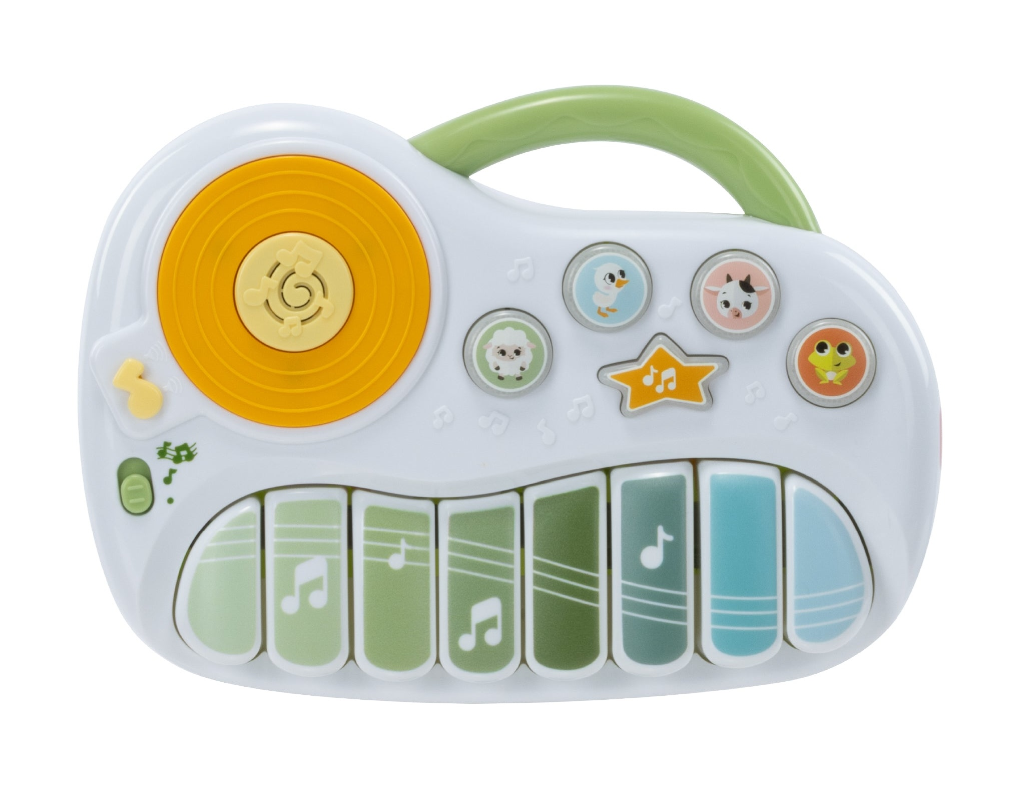 Hudobné piáno Tiny Love Farmers Funday deti zábavnou formou zoznamuje s hudbou, rytmom a zvukmi zvieratiek. Ponúka 4 režimy hry – od klasických tónov klavíra cez veselé melódie až po zvieracie zvukové efekty – a vďaka svetelným tlačidlám dokáže dieťa dlho udržať v pozornosti. Skvele sa hodí aj na hru na brušku: svetlá a zvuky motivujú dieťa zostávať aktívne dlhšie, čo podporuje posilňovanie a prípravu na ďalšie motorické míľniky. Stlačenie klávesov a tlačidiel navyše pomáha pochopiť princíp príčina – následok, pretože dieťa vidí, že jeho akcia vyvolá svetlo alebo zvuk. Piánko je ideálne ako pre samostatné objavovanie, tak aj pre spoločnú hru s rodičmi.