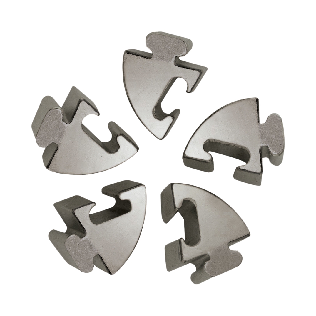 Hlavolamy Hanayama menia svoj názov na Huzzle Cast. Názov sa mení, avšak obsah ostáva rovnaký. Kvalita aj originalita hlavolamov je zachovaná. Hlavolamy Huzzle Cast sú v špeciálne navrhnutých formách odlievany zo zinku. Zinok je odľahčený a jeho precízna povrchová úprava priťahuje oko každého riešiteľa. Kovové hlavolamy Huzzle Cast sú vyrábané vo veľkosti, ktorá padne akurát do ruky. Riešení hlavolamov je príjemnou zábavou. Zabavíte tým nielen ruke, ale aj hlavu. Náročnosť hlavolamu je rozlíšená farbou krabičky, kedy biela farba je pre náročnosť 1-4 a čierna farba pre náročnosť 5-6 (presná náročnosť je graficky znázornená hviezdičkami).