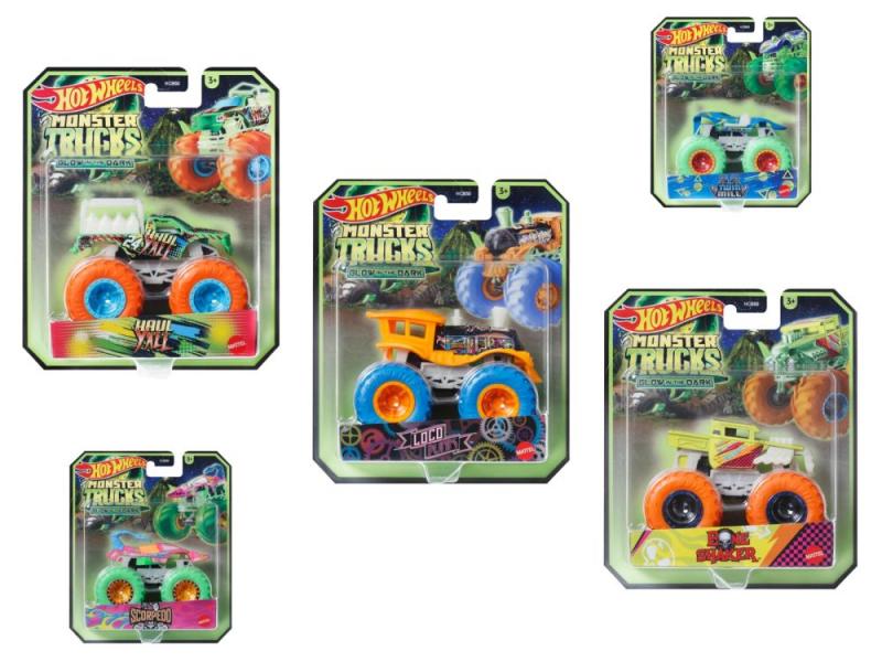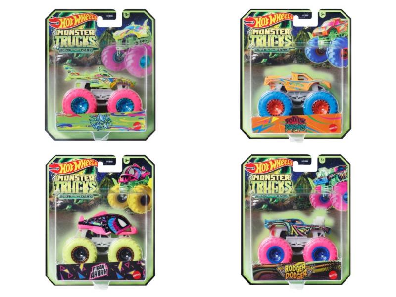 Táto akcia je ešte viac vzrušujúca, keď zhasnú svetlá a Hot Wheels® Monster Trucks Svietiace v tme sa rozžiaria! Na každom aute z tejto rady sú prvky žiariace v tme, ktoré ti ukážu, čo znamená "rýchlosť svetla"! Sleduj, ako spolu Monster Trucky bojujú v tme! Mega veľké kolesá a skvelé dizajny dodajú novú šťavu nekonečným búračkám a nárazom. Poznaj epický charakter svojho auta a uži si s ním ešte lepšiu zábavu. Pomôže ti k tomu mnoho detailov uvedených na balíčku - ako je meno, typ auta, výkon, jedinečný spôsob útoku a motorizácia. Fanúšikovia a zberatelia monster truckov ich budú chcieť všetky! Skvelý darček pre deti od 3 až do 8 rokov. Každý sa predáva samostatne podľa aktuálnej ponuky. Farby a vzhľad výrobku sa môžu líšiť.