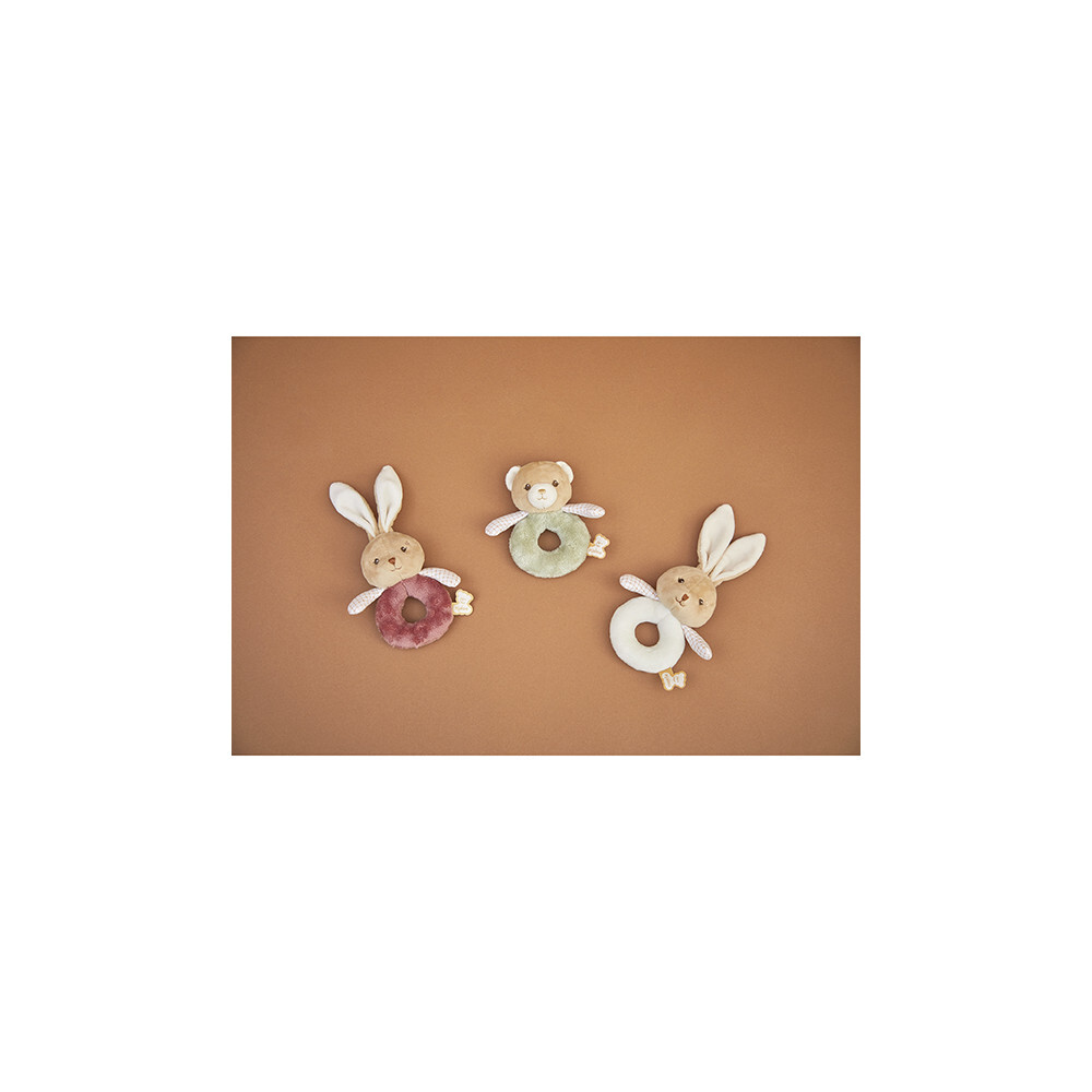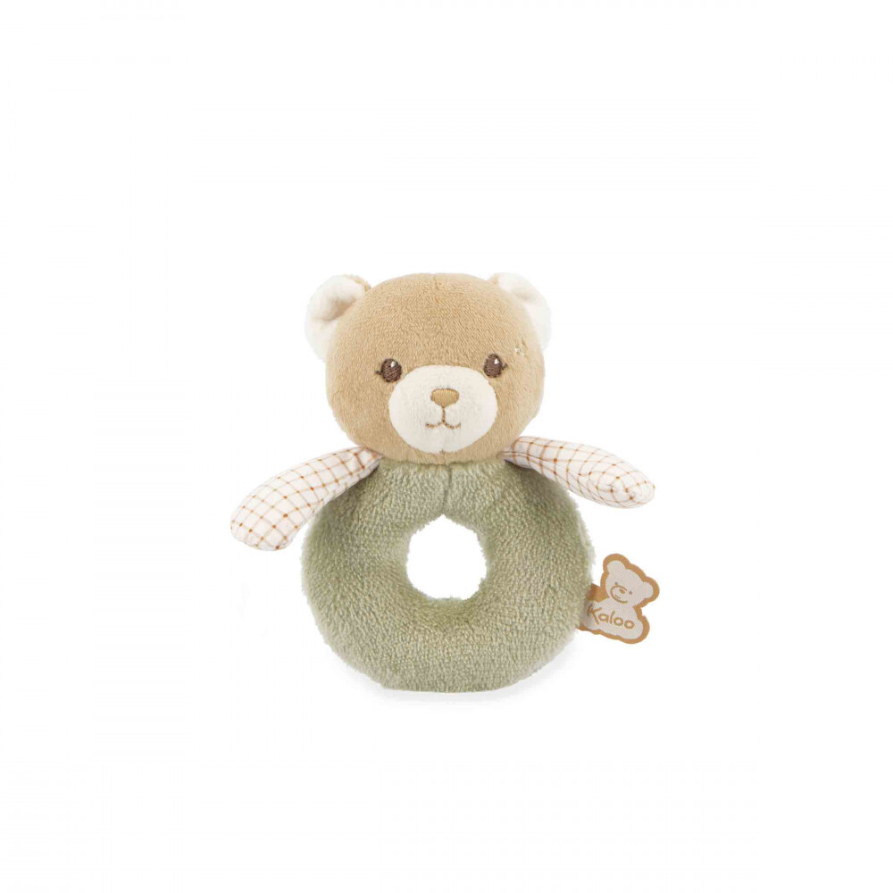 Chrastítko Zelený medvedík je roztomilá plyšová hračka navrhnutá na jemné stimulovanie zmyslového vývoja vášho bábätka. Vďaka zvončeku ukrytému vo vnútri hlavičky medvedíka táto hračka prebúdza zvedavosť bábätka pri každom zatraseníí. Krúžkový tvar uľahčuje uchopenie a rozvíja prvé jemné motorické zručnosti. S rozmermi 12,5 cm ide o ideálneho spoločníka na cesty, ktorý sa ľahko vojde do tašky na plienky alebo kočíka. Kolekcia: Kaloo – séria detských zmyslových hračiek. Krásna zelená plyšová srst je neuveriteľne jemná na dotyk a poskytuje príjemný pocit pre malé ručičky. Popelínové ramienka s károvaným vzorom dodávajú medvedíkovi nadčasový a nežný vzhľad charakteristický pre svet Kaloo. Hračka podporuje senzorický rozvoj a koordináciu ruky a oka. Parametre a vlastnosti Veľkosť: 12,5 cm Zvuková funkcia: zabudovaný zvonček v hlavičke Tvar: krúžkový – ľahké uchopenie pre bábätko Materiál a udržateľnosť Vyrobené z minimálne 80 % recyklovaných materiálov Povrch: syntetická kožušinka, popelín Výplň: 100 % recyklovaný polyester Prateľné v práčke pri 30 °C Vek: od narodenia